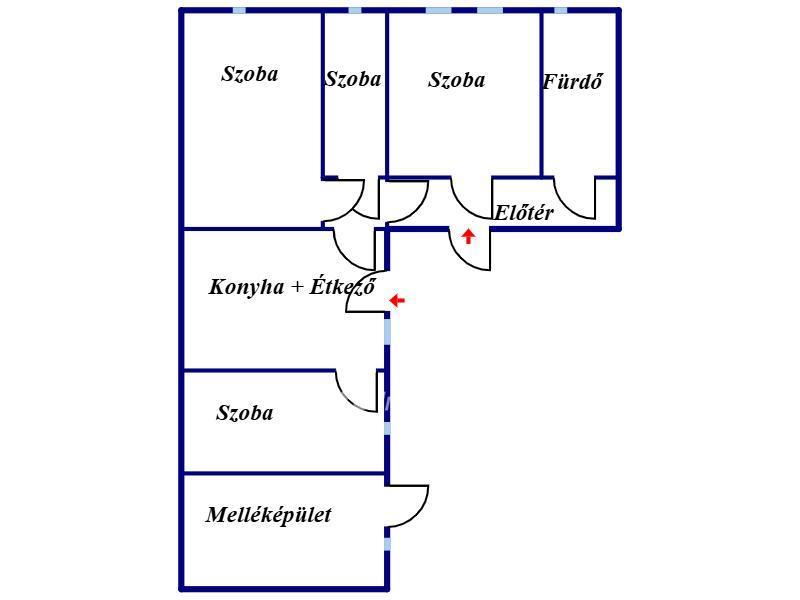 Az Ingatlanban négy szoba, konyha étkezővel valamint fürdő wc-vel található.