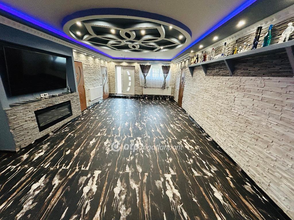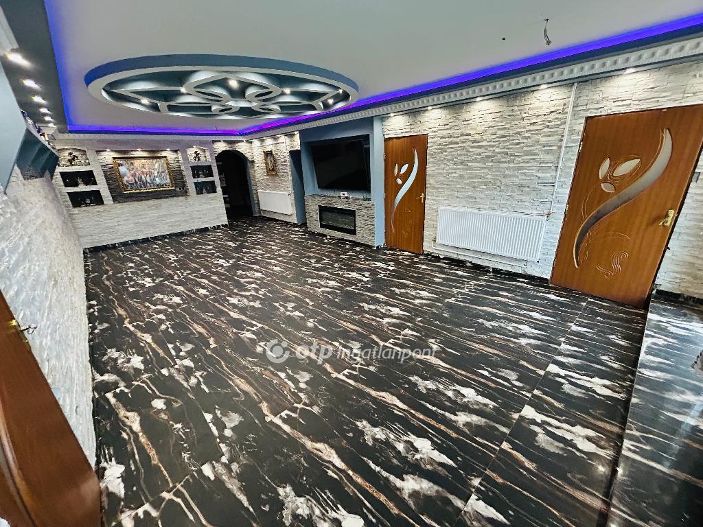 Az épületbe egy nagy teraszon jutunk be, ahol található egy hatalmas nappali-étekző, konyha, fürdőszoba WC-vel egy helyiségben, közlekedő, 5 külön nyíló hálószoba, WC.