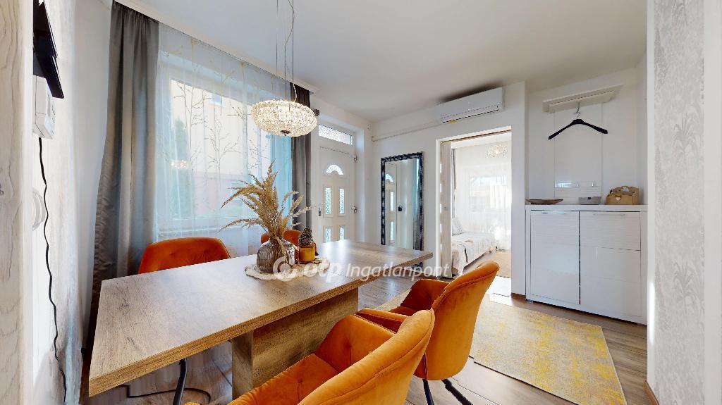 Eladásra kínálunk egy 51 nm-es, felújított kertes házat 21 nm-es fedett terasszal, mindössze 800 méterre a centrumtól. Az ingatlan minden részletében átgondolt, korszerű otthon: 8 éve teljes körű felújítást kapott , megújult a villamos- és vízhálózat, a fűtésrendszer, valamint új cseréptető került rá.