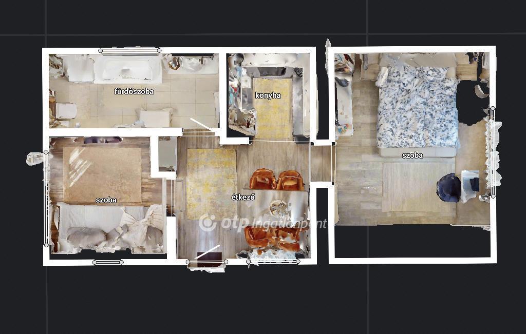 A ház elosztása praktikus és otthonos: 2 külön nyíló szoba, konyha , étkező , fürdőszoba, beépített gardrób .Ízléses, modern bútorzat, amely igény esetén maradhat