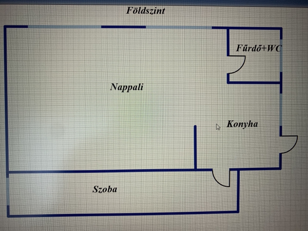 Az ingatlan földszintjén amerikai konyhás nappali, egy hálószoba, valamint fürdőszoba és WC egyben található.