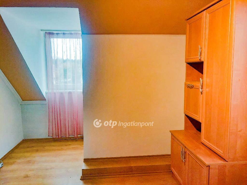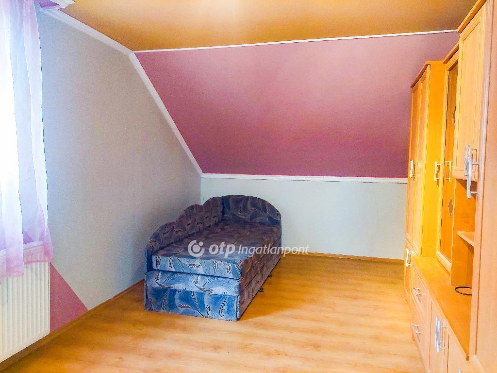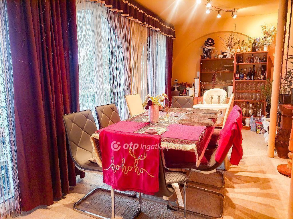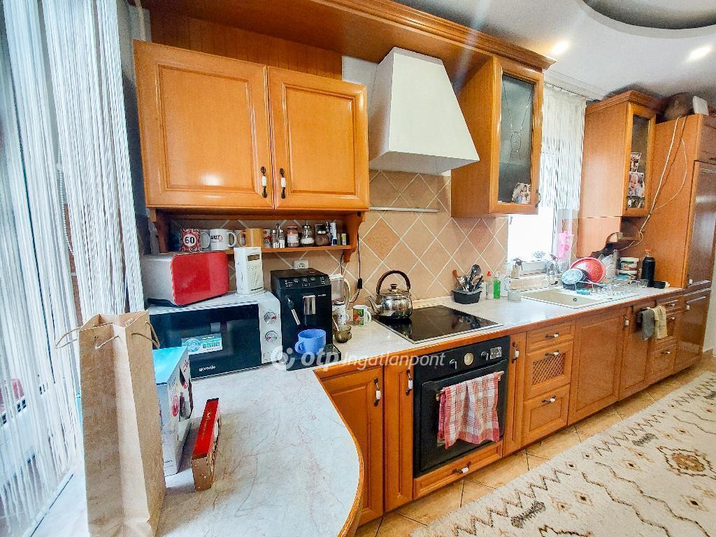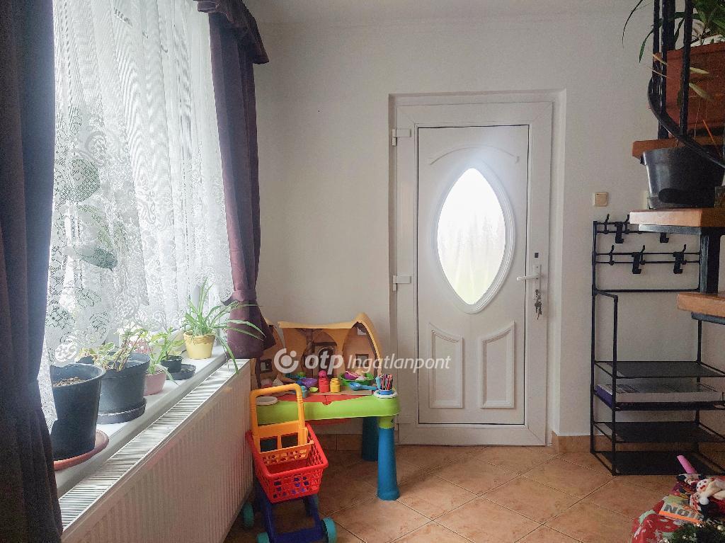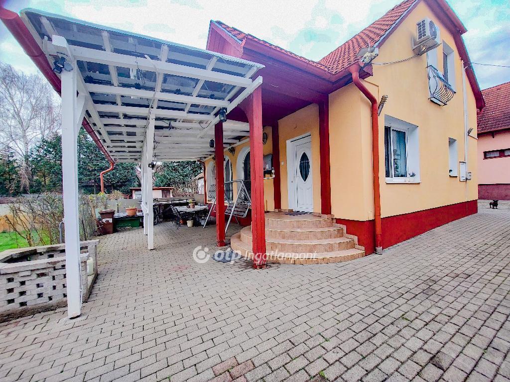 Az épület 1987-ben téglából és szilikát falazattal épült, külső hőszigeteléssel és a tetőtérben födém szigeteléssel ellátva, ami hozzájárul az alacsony rezsiköltséghez és a komfortos hőérzethez. A nyílászárók korszerű műanyag ablakok, redőnnyel felszerelve. A ház teljesen alápincézett, ahol mosókonyha, tárolók, valamint a gázkazán és a villanybojler kapott helyet. A földszinten tágas nappali, világos étkező kertkapcsolattal és fedett terasszal, beépített gépesített konyha, egy hálószoba, fürdőszoba wc-vel, valamint a garázsba vezető közlekedő található. A felső szintre masszív csigalépcső vezet, ahol két külön nyíló szoba és egy fürdőszoba wc-vel helyezkedik el.