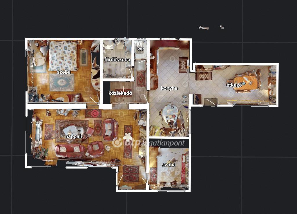 A nagy nappali pedig akár egy újabb szoba kialakítására is lehetőséget ad. Ezen felül két külön bejáratú szoba, fürdőszoba és külön WC található benne.