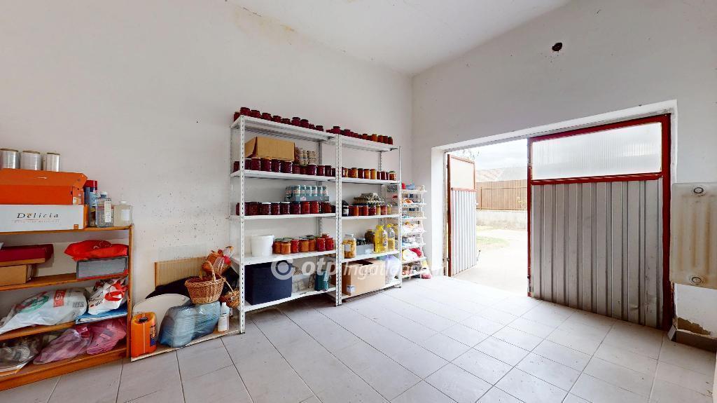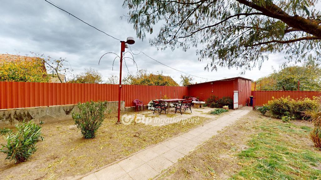 A ház folytatásában egy nagy méretű garázs található melyből egy tágas kamra nyílik, akár háztartási tárolónak is kiváló. Az udvaron külön 20 nm-es lemezépület szolgál kerti szerszámok tárolására. Az 1526 nm-es telek gondozott, különleges gyümölcsfákkal beültetett, fúrott kút áll rendelkezésre az öntözéshez.