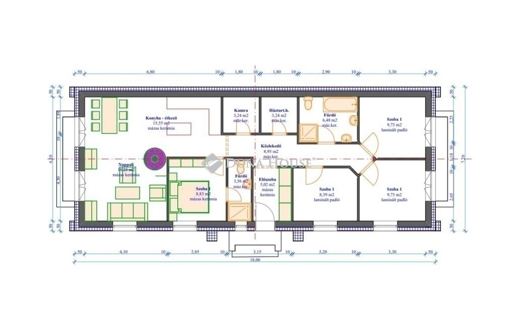 Eladó önálló családi ház Ócsa központjában, kiváló elhelyezkedéssel! Az ingatlan 2026-ban épül, beton alapra, 30 cm-es Porotherm téglából, fa födémes szerkezettel. A korszerű energetikai megoldásoknak köszönhetően a homlokzaton 20 cm vastag hőszigetelés készül, a födémen 20 cm közeggyapot szigeteléssel, míg a lábazaton 15 cm-es szigetelés kerül kialakításra. Külső megjelenését modern, antracit színvilág határozza meg, amelyet téglabörös árnyalatú, dörzsölt, vékonyvakolat tesz igazán elegánssá.Az otthon fűtéséről egy 7 kW-os hőszivattyú gondoskodik, padlófűtésen keresztül, amely kényelmes és energiatakarékos megoldást biztosít. Igény esetén felár ellenében fan-coil fűtés is választható. A ház 100,97 m²-es belső élettérrel rendelkezik, amelyben négy szoba, egy amerikai konyhás nappali, két fürdőszoba, egy háztartási helyiség, egy kamra, előszoba és közlekedő kap helyet, jól átgondolt, élhető elrendezéssel.Az ingatlan elhelyezkedése ideális családok számára is, hiszen az általános iskola, gimnázium és a városközpont mindössze 10 perc sétával elérhető. Vonatállomás szintén 10 perc séta távolságra, buszmegálló 2 perc alatt elérhető. A szaniterek kiválasztása rugalmas, a vevő igényeihez igazodva: hideg- és melegburkolatok, valamint szaniterek meghatározott árkategóriáig választhatók, egyedi igények esetén felár ellenében magasabb minőségű termékek is kérhetők.Várható átadás: 2026. 4. negyedév elejeÓcsáról vasúttal és autóbusszal egyaránt mindössze 45 perc alatt elérhető a Nyugati pályaudvar. Az M5-ös autópálya autóval 5 percen belül elérhető, ahonnan Budapest kb. 20 perc alatt megközelíthető.Ez az ingatlan ideális választás mindazok számára, akik új építésű, modern, energiatakarékos családi házat keresnek Ócsa frekventált részén.