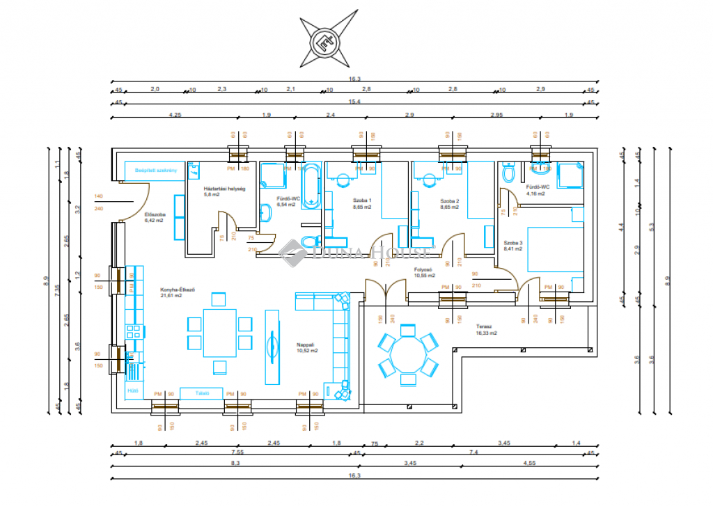 A nyílászárók kívül belül fehér színben gyártott 3 rétegű üvegezéssel készült szerkezetek lesznek.