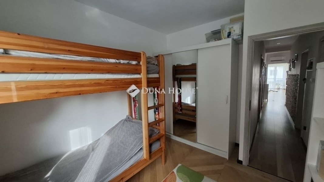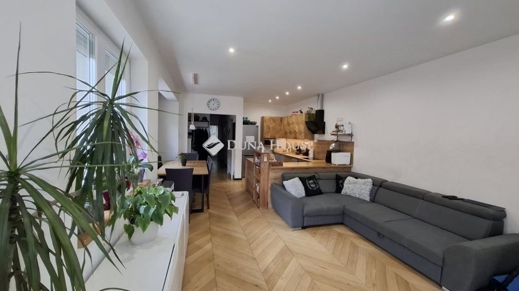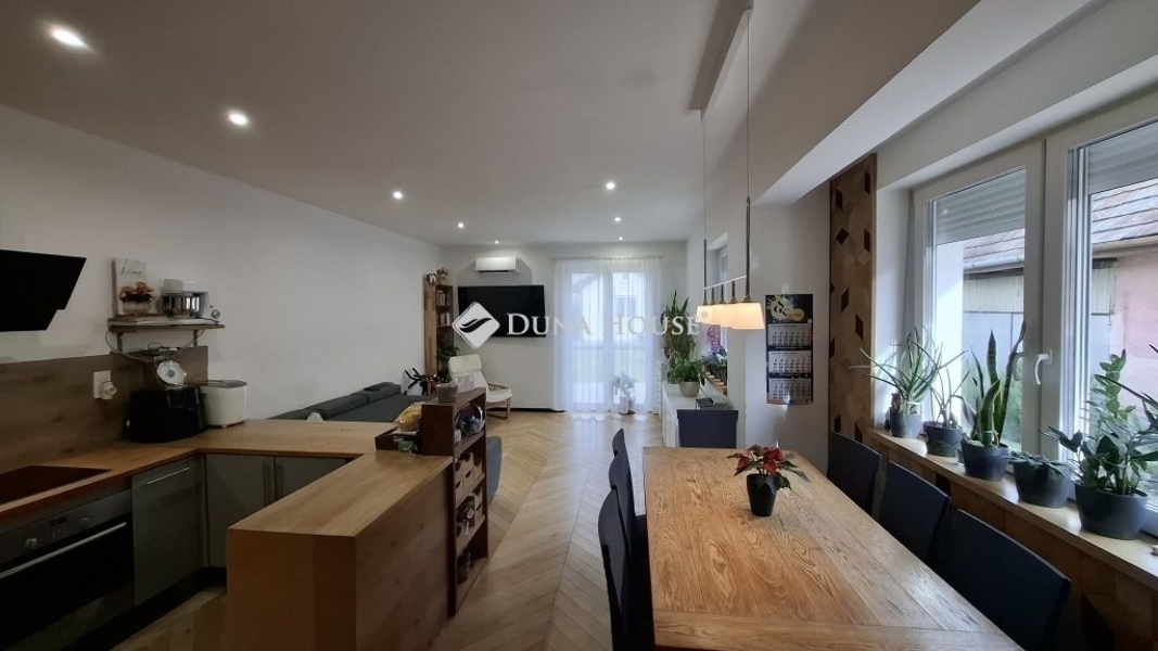 A 85 nm-es lakótér praktikus elosztású: három külön nyíló szoba, amerikai konyhás nappali, fürdőszoba, háztartási helyiség és külön mellékhelyiség került kialakításra. A szobákban igényes fa parketta található, míg a vizes helyiségekben kőburkolat emeli a minőségi érzetet. A falak több helyen egyedi fa burkolattal díszítettek, ami különleges, meleg hangulatot kölcsönöz az otthonnak. A fűtésről és hűtésről két darab 3 kW-os klíma gondoskodik, a kellemes hőérzetet pedig elektromos kazánról működő padlófűtés biztosítja. A melegvizet energiatakarékos hőszivattyús villanybojler szolgáltatja.