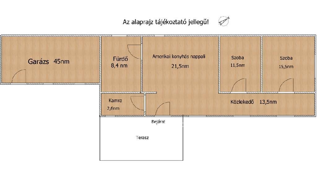 A ház barátságos elrendezésű: két külön szoba és egy amerikai konyhás nappali található benne, így kényelmes életteret biztosít akár családnak, akár pároknak. Az ingatlan felújított állapotú, így gyakorlatilag azonnal költözhető, nem kell nagyobb munkákkal számolni.
