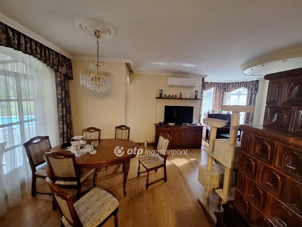 *****Kizárólag az OTP Ingatlanpont kínálatában! ***** Eladásra kínálunk Orosháza lakóövezetében, a városközponthoz közel egy két szintes, dupla telken fekvő, tégla építésű, 5 szobás családi házat. Az ingatlan kiváló állapotú, azonnal költözhető. Elsősorban nagyobb családoknak lehet alkalmas nagy mérete miatt. A földszinten található egy nagy tágas amerikai konyhás nappali, teljesen gépesítve. Az egyik szoba a földszinten található mely jelenleg dolgozó szobaként van hasznosítva. Emellett még található lent egy kamra, egy fürdőszoba, egy különálló mosdó, valamint egy beépített szekrényekkel felszerelt gardrób szoba. Az emeletre felérve egy nagy tágas nappaliba érkezünk mely kellemes helyszínt biztosít a közös családi időtöltéshez. Az emeleten található még 4 külön nyíló szoba, valamint egy fürdőszoba káddal, illetve egy külön álló mosdó helyiség. Emellett itt is található egy bútorozott gardrób szoba. Az udvarra kilépve van egy kisebb fedett terasz, illetve egy külön épületben kialakított finnszauna. Az udvarban kialakításra került egy tűzrakóhely, mely a nyári estéken igazán kellemes hely lehet összejövetelekhez is. Az udvarban található még egy fűthető, földbeásott medence, mely saját fedéssel rendelkezik. A kert öntözéséhez kialakításra került öntöző rendszer is. A telken belül található még egy dupla, valamint egy szimpla garázs is, illetve a házzal egybe építésre is került egy, melyet jelenleg konditeremként hasznosítanak, de továbbra is lehet használni igény szerint garázsként, mindegyik elektromos garázskapuval rendelkezik. Az ingatlan 600 méteres körzetében található étterem, iskola, bolt, valamint buszmegálló is, de ettől függetlenül mégis egy nyugodt és kellemes környezetben található. Az ingatlanra hitel, babaváró támogatás felvehető, melynek elintézésében szintén gyors és szakértő segítséget nyújtunk önnek igény esetén! Amennyiben felkeltettem érdeklődését keressen bátran vagy esetleg ingatlant adna el? Abban az esetben is állunk rendelkezésére és segítünk az értékesítés kezdetétől a végéig.