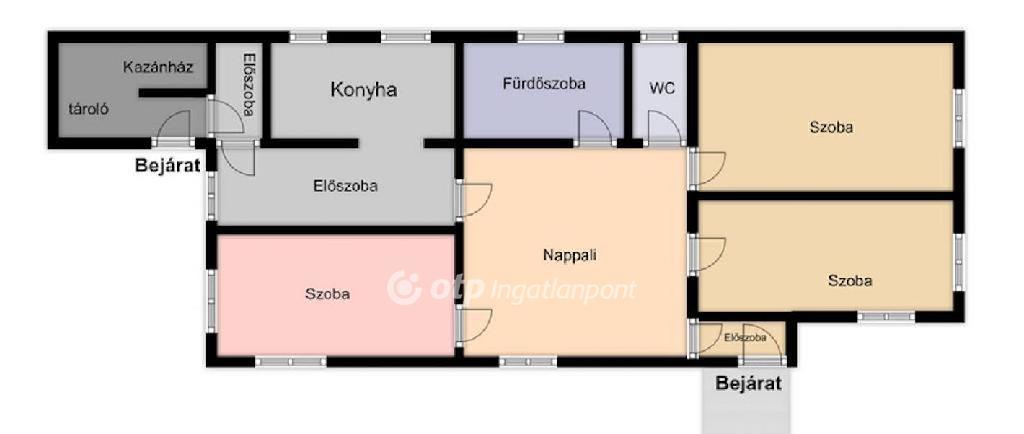 Helyiségek: 3 szoba, konyha, külön étkező, kamra, fürdőszoba, külön WC