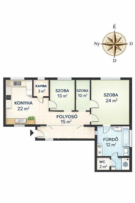 3 tágas szoba