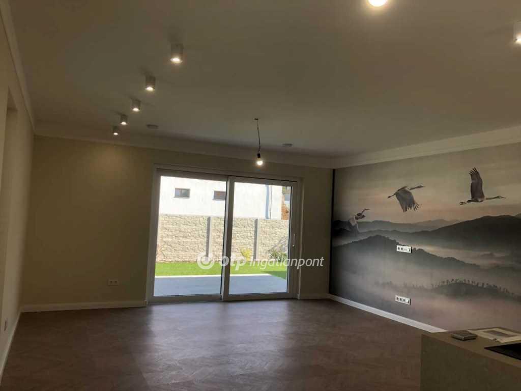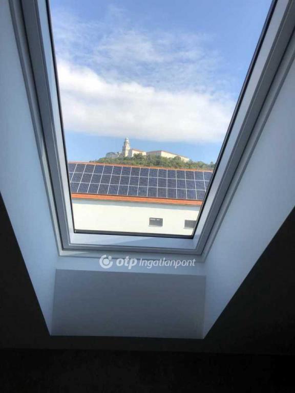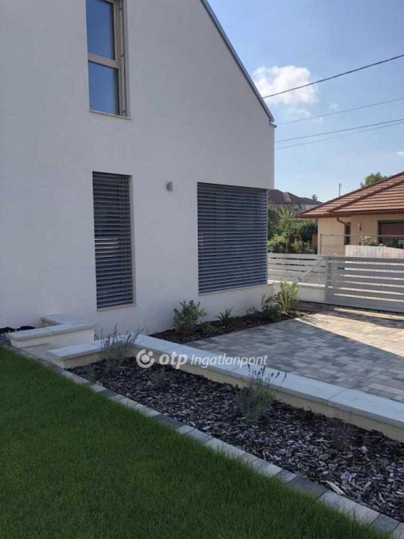 Pannonhalma település csendes, átmenő forgalomtól mentes utcájában eladásra kínálom ezt a 162 nm alapterületű, nappali+4 szobás, kétszintes, prémium kategóriás iker családi házat. Az ingatlan, amely 2025-ben épült a legkorszerűbb műszaki és esztétikai kivitellel, dupla komfortot biztosít. Belső elrendezése praktikus, jó ízléssel, minimál stílusban kialakított. Az előszobából belépve a földszinti lakótérben egy közlekedőn keresztül tágas nappali+konyha+étkező fogad bennünket. A konyha beépített minőségi konyhabútorral és háztartási gépekkel van felszerelve. Az előszobában nagy beépített gardrób szekrény található. Az előszobából nyílik a vendég WC, egy nagy hálószoba, mellette fürdőszoba WC-el. Ugyancsak innen nyílik a háztartási helyiség a fűtési rendszer belső egységével. A lépcső alatti tér kihasználásával tároló került kialakításra. A nappaliból és a konyhából kilépve kertkapcsolatos terasz biztosítja a kellemes pihenést. Az emeleten két tágas hálószoba, 29 nm-s közösségi tér és egy tágas káddal és tusolóval beépített fürdőszoba került kialakításra. A közösségi térből nyíló tetőteraszról pazar rálátás van a Pannonhalmi apátságra. Minden helyisége minőségi burkolattal van ellátva. A nyílászárók 3 rétegű hő- és hangszigetelt ablakok, elektromos vezérlésű redőnnyel. A megújuló energiával ellátott épület fűtése hőszivattyús rendszerrel működik, padló és mennyezet fűtéssel-hűtéssel. Az épületben korszerű biztonsági rendszer került kiépítésre. A házhoz kapcsolódik egy 23 nm-s garázs, amely a lakótérből is elérhető. A garázs előtt térkövezett, részben fedett kocsi beálló található. Az ingatlanhoz tartozó körbekerített telek hányad 470 nm, igényesen parkosított, automata öntözővel ellátott. További kérdés esetén, vagy megtekintéssel kapcsolatban kérem, keressen bizalommal!