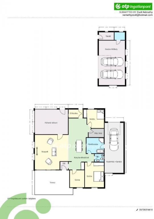 A házhoz tartozik egy 50 m2-es, duplabeállós garázs is, amelyben külön mellékhelyiség, műhely és tároló található. A garázs mögött betonozott aljzatú, fa szerkezetű kerti tároló, valamint egy autómosásra kialakított helyiség biztosít további praktikus lehetőségeket.