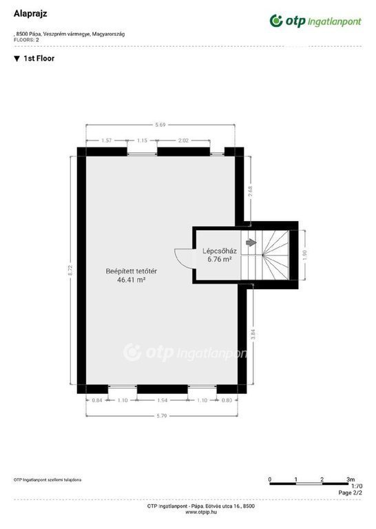ELADÓ CSALÁDI HÁZ PÁPÁN! Itt a lehetőség, hogy kihasználja ezt a ritka ajánlatot! Eladásra kínálok Veszprém vármegyében, Pápán egy 137,9 m2-es, remek elrendezésű, kétszintes családi házat, 1596 m2-es telken. A ház kiváló statikai és szerkezeti állapotú, minden helyiségére jellemző, hogy világos, igazán otthonos. Elosztását tekintve áll 2 teljes értékű, külön bejáratú szobából, étkezőből és konyhából, kamrából, fürdőszobából, WC-ből, előszobából, kazánházból és padlásfeljáróból. A tetőtér 46,4 m2 befejezésének lehetősége az ingatlan új tulajdonosára vár. Az emeleti szinten további két szoba, egy fürdő és egy konyhasarok kialakítására is van lehetőség. A telek további részében műhely és 1 tároló helység foglal helyet. A szobákban jó minőségű parketta található, a többi helyiség járólap burkolatú. A nyílászárók cserélve lettek, műanyagok, jó állapotúak, redőnnyel, szunyoghálóval felszereltek. A ház melegéről gáz kazán gondoskodik radiátoros hőleadással. A meleg vízet szintén a gáz kazán szolgáltatja. Kert része füvesített. A ház előtt szintén egy füves terület fekszik parkolási lehetőséggel. A házat 1985-ben építette tulajdonosa. Falazata tégla, a tető festett palával fedett. 12 éve teljes felújitás történt, viz- és villanyhálózat felújitása, a nyílászárók cseréje megtörtént, illetve új burkolatot kaptak a helyiségek. Ez a családi ház egy nagyon jó alap, kis türelemmel varázslatos otthon lehet belőle! Gyermekes családoknak ideális, a tetőtér beépíthető. Udvar felé terasszal is bővíthető. Festéssel költözhető! Ajánlom mindazon vevők részére, akik egy szép, családias, nyugodt részen kívánnak élni, kényelmes otthonban. Az OTP Ingatlanpont teljes körű ügyintézéssel áll az eladók és a vevők rendelkezésére. A kínálatunkból választott ingatlan finanszírozásához kedvezményes hitelkonstrukciót kínálunk. Az adásvételi szerződés megkötéséhez igény szerint megbízható ügyvédi közreműködést biztosítunk, és segítséget nyújtunk az adásvételhez kapcsolódó ügyek intézéséhez is. Az ingatlanról készült alaprajz, illetve fényképfelvételek az Otp ingatlanpont szellemi tulajdonát képezik. Amennyiben felkeltette érdeklődését az általam kínált ingatlan, keressen bizalommal!