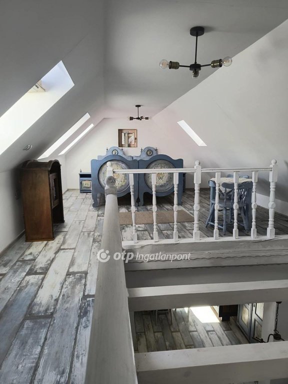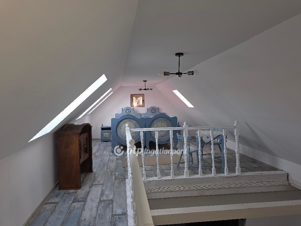 A földszint és a tetőtér jelenleg egy légteret alkot, igény esetén további szobák kialakíthatók.