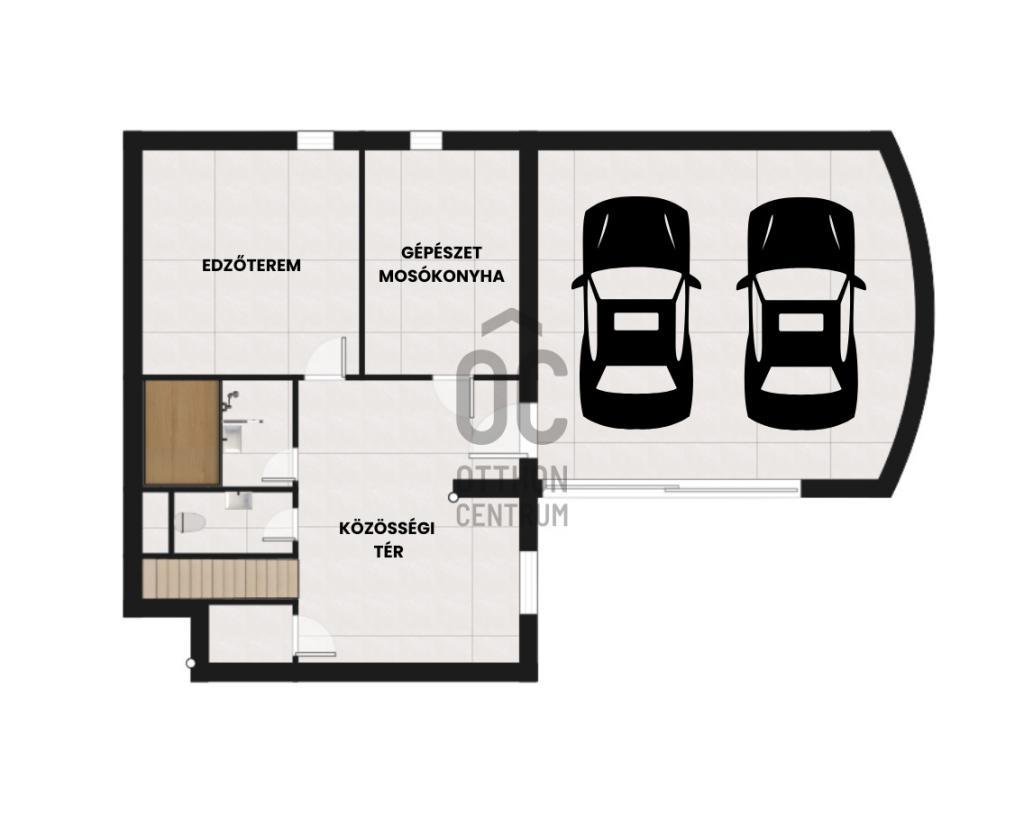- Az alsó szinten található KÉT ÁLLÁSOS GARÁZS mellett, további két nyitott autóbeállási lehetőség van.