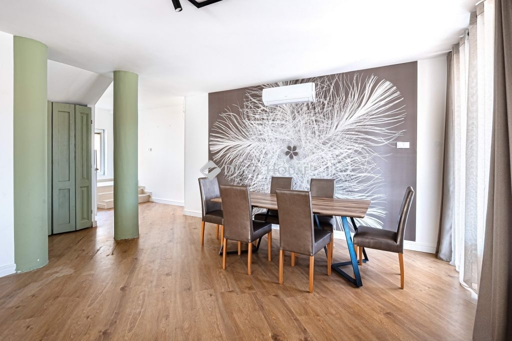 Pécelen, a Kelő lakóparkban új építésű, 2 szintes, tégla falazatú, 430 nm lakóterű, 2 LAKÁSOS IKERHÁZ, egyben megvásárolható, számtalan lehetőséget biztosítva a jövendőbeli tulajdonosnak. Kiváló adottságokkal rendelkező ingatlan, igényes kivitelezéssel, minőségi alapanyagokból, átgondolt tervezéssel, egyedi belső kialakítással készült, ahol a fő szempont a kényelem és alacsony rezsiköltség mellett az exkluzív megjelenés volt.Mindkét lakásban a földszinten egy étkezőrészt is magába foglaló amerikai konyhás hatalmas nappali van EXKLUZÍV KONYHABÚTORRAL, valamint egy MODERN előtér, egy ELEGÁNS FÜRDŐ külön wc, pakoló és szerviz helyiségek. Az emeleten mindkét lakásban 4-4 szobát, 1-2 fürdőt és rengeteg teraszt találunk. A fenti egybefüggő TERASZOKRÓL GYÖNYÖRŰ A PANORÁMA. Az egész házat lakberendező tervezte. Egyedi bútorok, és megoldások teszik álomotthonná. LUXUS kivitelű, modern, kiváló minőségű anyagok használatával. Egyedileg gyártott, magas minőségű nyílászárók a nappaliban, motoros távműködtetésű redőnyös, ablakok. A nyílászárók és a bejárati ajtók műanyag kivitelezésűek.A nagyobbik lakás nappalijában és a közlekedőkben járólap, a szobákban nagy kopásállóságú laminált burkolat. A fűtést és a melegvizet gázkazán biztosítja. A nappaliban padlófűtés, a további helyiségekben radiátorok vannak. Kamera és riasztórendszer. 30 cm-es külső falvastagság és 15 cm-es szigetelés. Ehhez a házrészhez 836 nm-es telekterület tartozik, és összességében 65 nm-es terasz, nappali –konyha és étkező közel 70 nm-es, központi porszívó és központi szennyes ledobó van.A másik lakásban a nappali mellett fűtött, dupla, két autó beállására alkalmas, motoros távműködtetésű ajtóval zárt garázs és 300 nm-es telekterület, összesen 48 nm terasz tartozik. A földszinten vagy az előszobából, vagy közvetlenül a garázsból a 58nm –es nappali-konyha-étkezőbe jutunk, amihez kapcsolódik a közös terasz és egy szülői háló. Jobbra nyílik egy fürdőszoba, mellette egy spájz. A széles lépcsőházban feljutva egy újabb nappali található, ebből nyílik 3 szoba, egy fürdőszoba, egy külön WC és a mosókonyha. Mindegyik szobához tartozik terasz gyönyörű panorámával. Kertvárosias, csendes, elegáns, új építésű környezet sok zölddel, gondozott ingatlanok és kertek a szomszédok felől . A környék fejlett infrastruktúrájának köszönhetően bővelkedik szociális intézményekben, bölcsőde, óvoda, általános iskola, bevásárlási lehetőségek. Közlekedés: busszal az Örs vezér tere vagy vonattal a Keleti pu. kb. fél óra alatt elérhető. Az M0-ás 2 percre van.A TULAJDONOS BALATONI HÁZAT BESZÁMÍTANA A VÉTELÁRBA!!