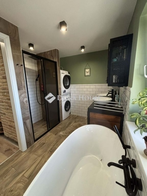 A ház konyha-étkezős, fürdőszobájában kád és zuhanyzó is található.