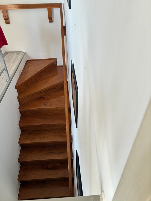 Az épület kétszintes kialakítású: szuterén és emeleti szintből áll. Az emeleten három hálószoba, egy világos nappali ? ahonnan közvetlen kijárat nyílik a nagy teraszra ?, valamint fürdőszoba és külön WC található. A szuterén szinten egy kényelmes méretű konyha és étkező, valamint előszoba került kialakításra, innen közvetlenül elérhető az udvar.