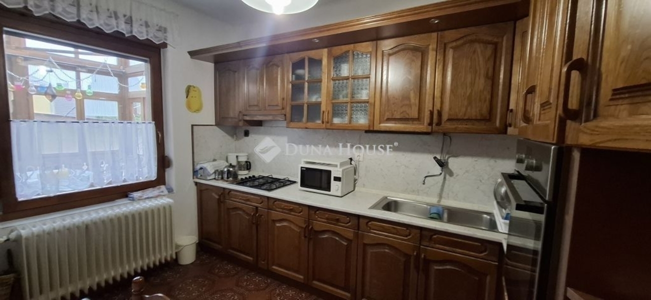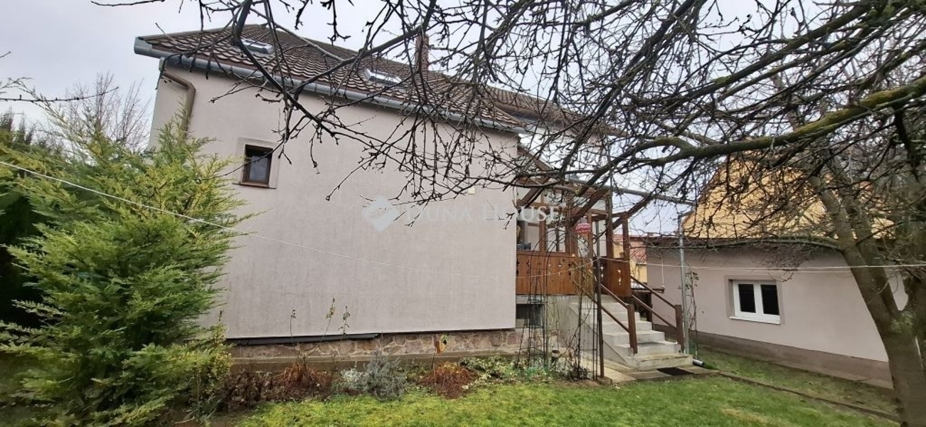 Régi Kertváros-önálló családi ház-garázsokkal eladó!Pécs közkedvelt, csendes, családi házas részén hangulatos utcában kétszintes családi ház új tulajdonosait keresi!*Jó méretű, sík telek (609 m2)*Dupla garázs (30+15 m2) *Nagy családsoknak vagy két generációnak is alkalmas elosztás (szintenként 100 m2)*Hangulatos fedett terasz kertkapcsolattal (12,5 m2) A ház alsó szintjén napfényes teraszkapcsolatos nappali, étkező, tágas konyha spájzzal, fürdőszoba káddal és zuhanyzóval, külön wc és két jó méretű szoba található. Emeletére széles, stabil lépcsősor vezet: itt további 3 szoba, fürdőszoba, gardrób és egy konyha került kialakításra, körbefútó erkélyéről hangulatos kilátás nyílik a városra és a Mecsekre. Kertjében jól megfér a gyümölcsfák mellett a veteményes és a gyerekek játszórésze. Műszaki jellemzők:*10 cm-es grafitos külső szigetelés *újszerű fa és műanyag nyílászárók *fémlemezes tető 20cm-es födémszigeteléssel *Hörmann automata kapu és garázsajtó *lent és fent inverteres klíma berendezés*3 fázis, réz vezetékek *részben felújított fürdőszobák és konyhák *vegyes tüzelésű és régebbi típusú gázkazán. A ház alatt praktikus szuterén, ahol a fűtő berendezések mellett műhely, hobbiszoba, wellness és konditerem is kialakítható. Az ingatlannak két bejárata van, igy a lenti két helyiség akár rendelőként, irodaként is használható. Mérete alapján befektetőknek társasház kialakítása is racionális megoldás lehet. Az ingatlan tehermentes, hitelképes, gyorsan birtokba vehető. Kérdése maradt? Szívesen megnézné? Várom hívását!