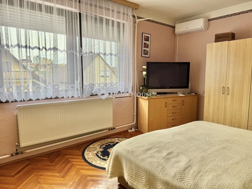 Pécsett, a Szántó László utcában egy kiváló adottságokkal rendelkező, több generáció együttélésére vagy akár vállalkozás céljára is alkalmas családi ház.Az 1984-ben épült, utcafronti ingatlan összesen 150 m² lakóterű. Alsó szintjén tágas nappali, két külön nyíló szoba, fürdőszoba, nagyméretű konyha étkezővel, valamint kamra kapott helyet. A tetőtérben további 2 és fél szoba, egy konyha-étkező, fürdőszoba és egy erkély található, így akár külön lakrészként is használható. Az épület alatt egy 46 m²-es alagsor is rendelkezésre áll, amely tárolásra vagy egyéb célra kiváló.Az ingatlan fűtéséről gázcirkó kazán gondoskodik, emellett klímaberendezések is biztosítják a komfortot.A 692 m²-es telken található egy különálló, 1997-ben épült, kétszintes ingatlan is, amely számos lehetőséget rejt magában. Az alsó, 32 m²-es szinten amerikai konyhás nappali és WC került kialakításra, míg a tetőtérben (szintén 32 m²) 3 félszoba, fürdőszoba, külön WC és közlekedő található. Ez az épület ideális lehet külön lakrésznek, irodának vagy bármilyen vállalkozási tevékenységre.Az ingatlanhoz tartozik továbbá két garázs, összesen 66 m² alapterülettel.A környék csendes, rendezett, jó szomszédsággal. A buszmegálló néhány perc sétára található, autóval pedig minden fontos intézmény, bevásárlási lehetőség és szolgáltatás 10 percen belül elérhető.Az ingatlan kiváló választás nagycsaládosoknak, több generáció számára, illetve mindazoknak, akik otthonról végezhető vállalkozásban gondolkodnak, és ehhez külön életteret szeretnének kialakítani.Bővebb információért, megtekintésért, várom hívását!