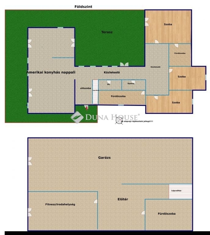 A földszinten helyet kapott még 3 tágas szoba, előtér, közlekedő, kamra, 2 fürdőszoba. A Tulajdonos külön figyelmet fordított a szülői szekció kialakítására amihez külön fürdőszoba is megépítésre került.