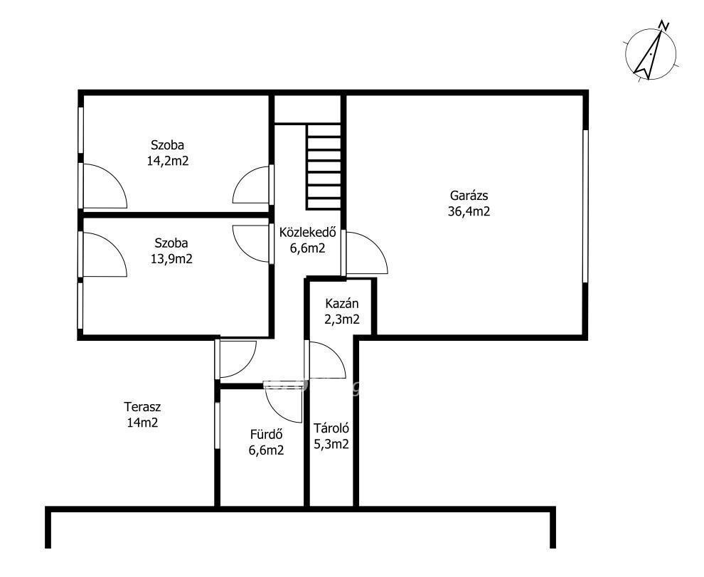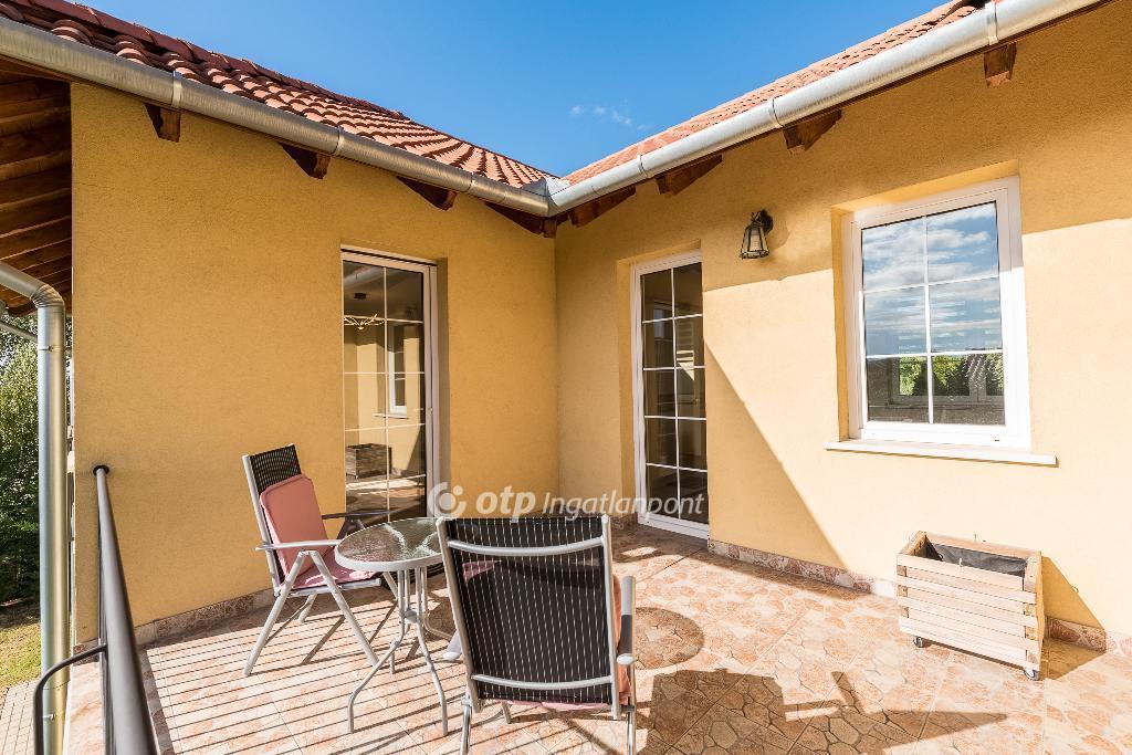 A ház lakóterülete 133 m?, ehhez tartozik egy 36 m?-es, kétállásos fűthető garázs, valamint összesen 38 m? terasz.