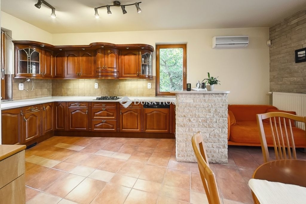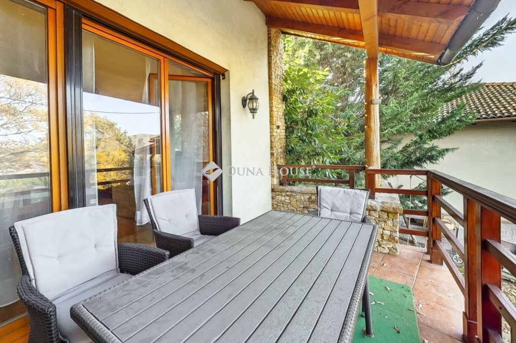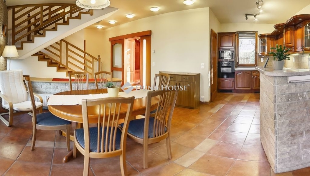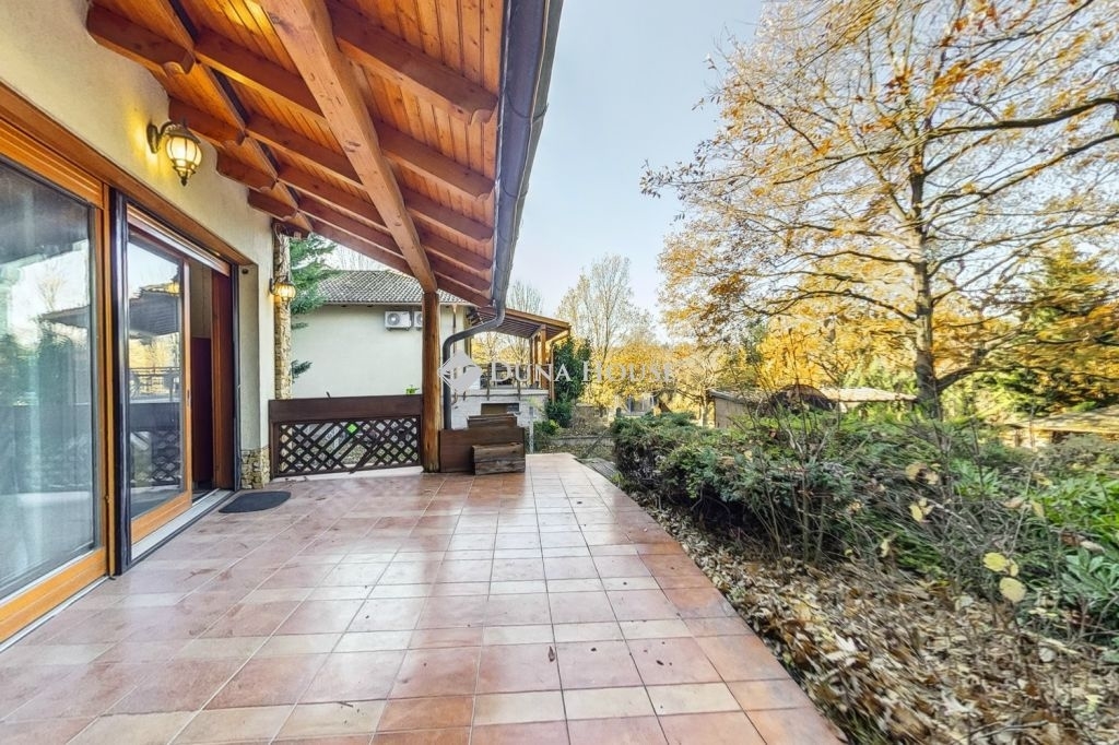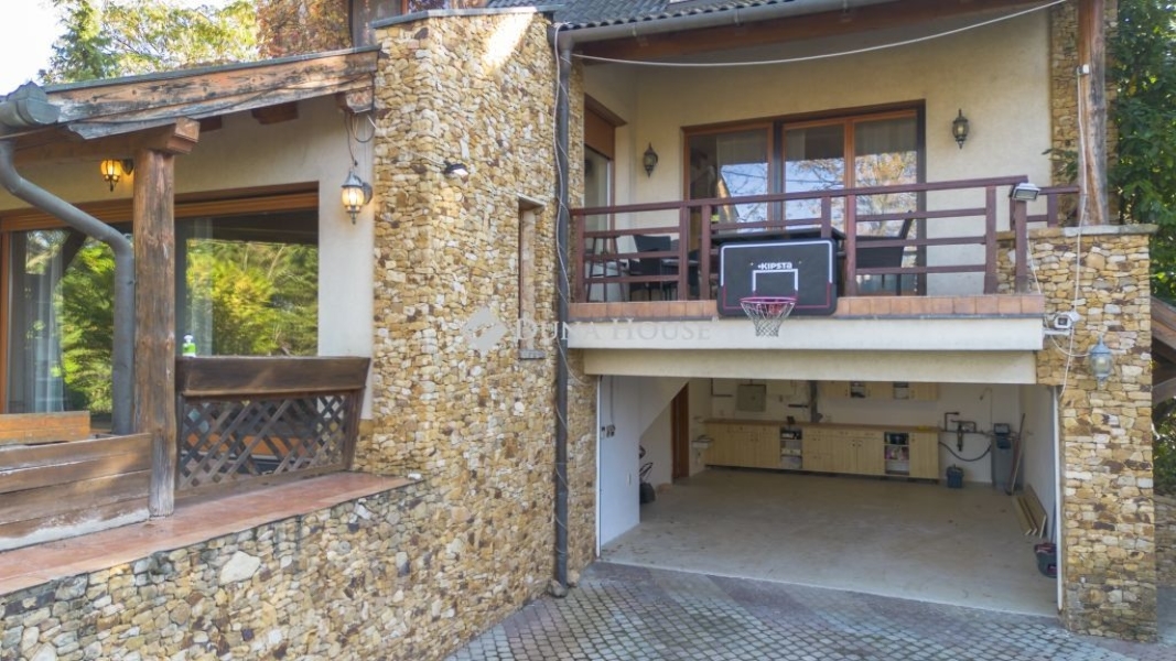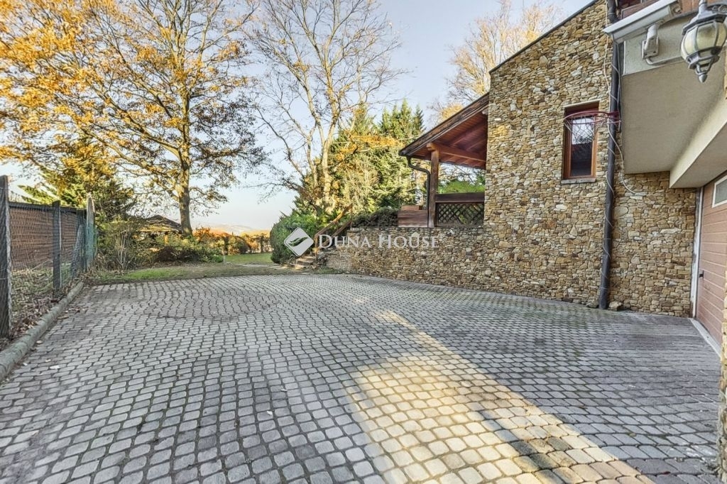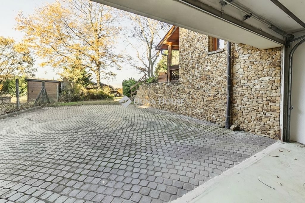Eladásra kínálunk egy különleges hangulatú, örök panorámás családi házat Pilisjászfalu csendes, zöldövezeti részén. A gondosan megépített, 2003-ban épült ingatlan egy 800 m²-es, lejtős telken helyezkedik el, ahonnan lenyűgöző kilátás nyílik a dági és csolnoki hegyekre. Esténként a 10-es út fényei különleges hangulatot adnak a látványnak.A ház teljes alapterülete 300 m², melyből 227 m² lakótér, a fennmaradó rész garázs, pince és kiszolgálóhelyiségek. A téglaépítésű ingatlan külső homlokzatát és kerítését egyedi, csobánkai kőburkolat díszíti, ami eleganciát és időtállóságot kölcsönöz a háznak.A pinceszinten helyet kapott a garázs távirányítású kapuval, kazánház, szaunahelyiség (jelenleg masszázskád bekötve), zuhanyzó, valamint borospince és közlekedő.A földszinten egy tágas nappali található, ahová gránitlépcső vezet. Innen nyílik a konyha-étkező, kamra, vendégszoba és egy külön fürdőszoba. A nappalihoz és az étkezőhöz több fedett terasz is kapcsolódik, ahonnan élvezhető a gyönyörű panoráma.A tetőtérben három hálószoba, közlekedő és egy elegáns fürdőszoba található.A ház felszereltsége és kényelmi funkciói minden igényt kielégítenek:Husqvarna központi porszívó