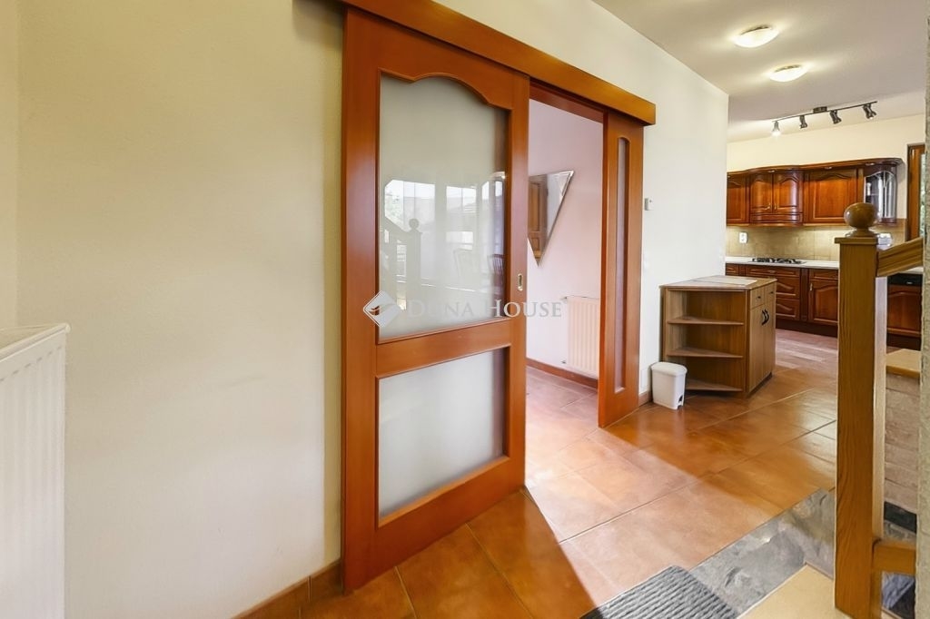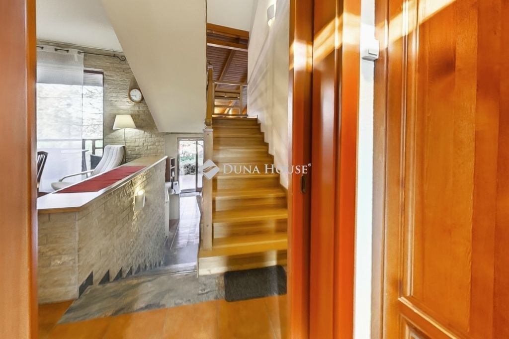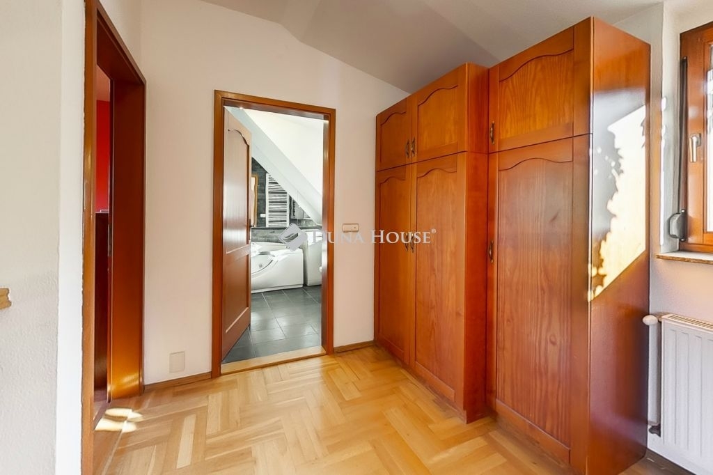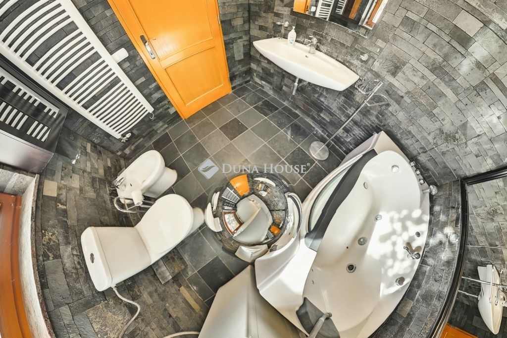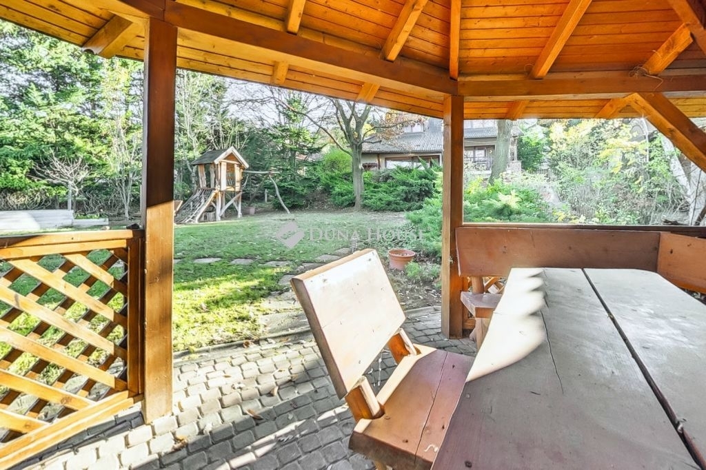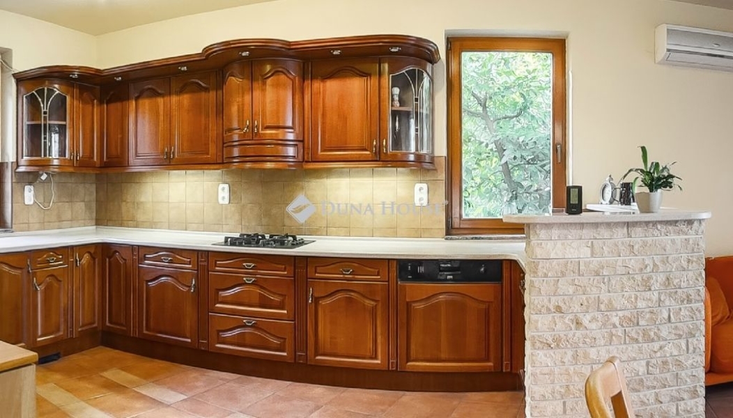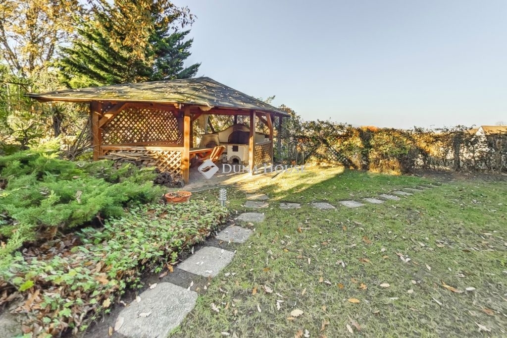 Eladásra kínálunk egy különleges hangulatú, örök panorámás családi házat Pilisjászfalu csendes, zöldövezeti részén. A gondosan megépített, 2003-ban épült ingatlan egy 800 m²-es, lejtős telken helyezkedik el, ahonnan lenyűgöző kilátás nyílik a dági és csolnoki hegyekre. Esténként a 10-es út fényei különleges hangulatot adnak a látványnak.A ház teljes alapterülete 300 m², melyből 227 m² lakótér, a fennmaradó rész garázs, pince és kiszolgálóhelyiségek. A téglaépítésű ingatlan külső homlokzatát és kerítését egyedi, csobánkai kőburkolat díszíti, ami eleganciát és időtállóságot kölcsönöz a háznak.A pinceszinten helyet kapott a garázs távirányítású kapuval, kazánház, szaunahelyiség (jelenleg masszázskád bekötve), zuhanyzó, valamint borospince és közlekedő.A földszinten egy tágas nappali található, ahová gránitlépcső vezet. Innen nyílik a konyha-étkező, kamra, vendégszoba és egy külön fürdőszoba. A nappalihoz és az étkezőhöz több fedett terasz is kapcsolódik, ahonnan élvezhető a gyönyörű panoráma.A tetőtérben három hálószoba, közlekedő és egy elegáns fürdőszoba található.A ház felszereltsége és kényelmi funkciói minden igényt kielégítenek:Husqvarna központi porszívó