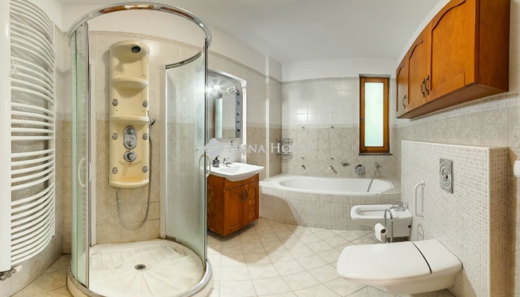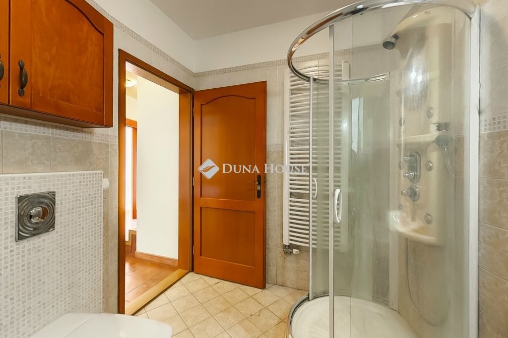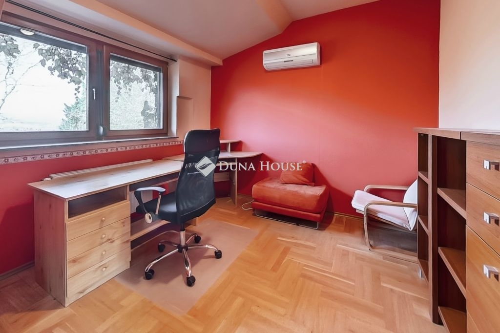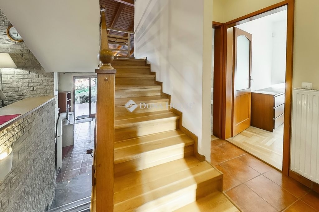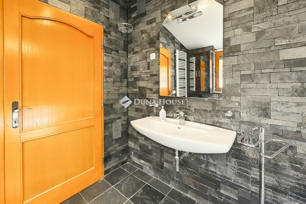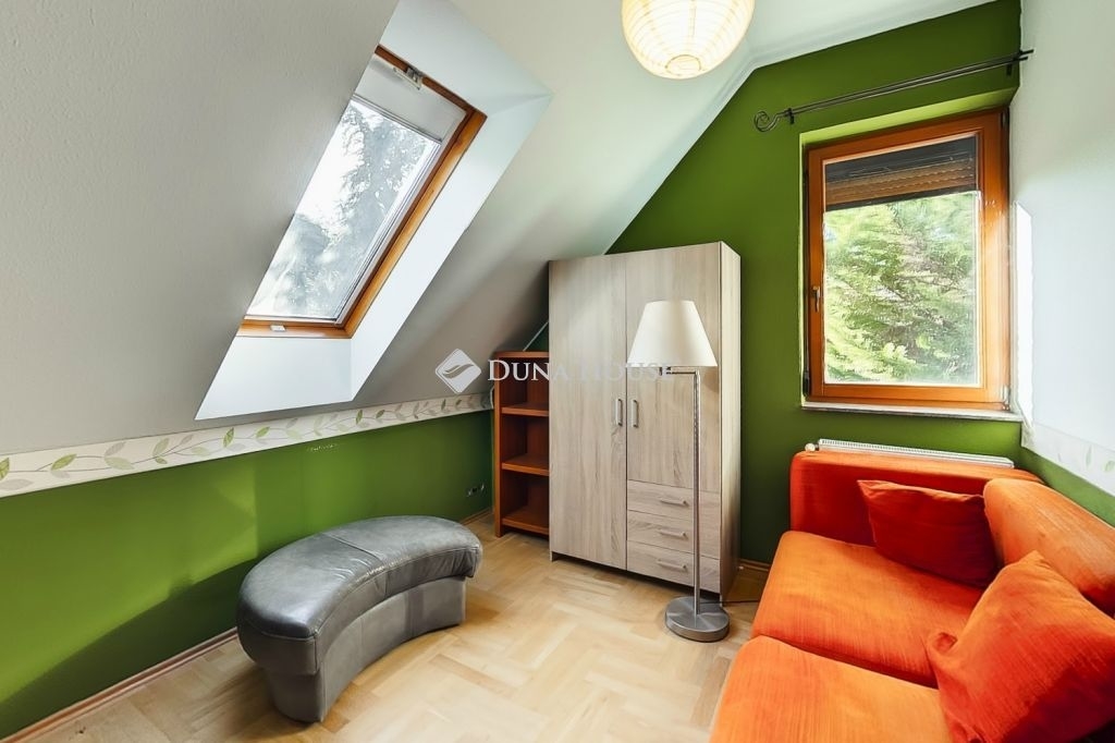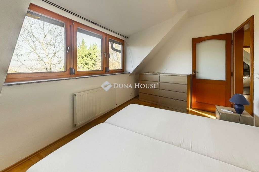Eladásra kínálunk egy különleges hangulatú, örök panorámás családi házat Pilisjászfalu csendes, zöldövezeti részén. A gondosan megépített, 2003-ban épült ingatlan egy 800 m²-es, lejtős telken helyezkedik el, ahonnan lenyűgöző kilátás nyílik a dági és csolnoki hegyekre. Esténként a 10-es út fényei különleges hangulatot adnak a látványnak.A ház teljes alapterülete 300 m², melyből 227 m² lakótér, a fennmaradó rész garázs, pince és kiszolgálóhelyiségek. A téglaépítésű ingatlan külső homlokzatát és kerítését egyedi, csobánkai kőburkolat díszíti, ami eleganciát és időtállóságot kölcsönöz a háznak.A pinceszinten helyet kapott a garázs távirányítású kapuval, kazánház, szaunahelyiség (jelenleg masszázskád bekötve), zuhanyzó, valamint borospince és közlekedő.A földszinten egy tágas nappali található, ahová gránitlépcső vezet. Innen nyílik a konyha-étkező, kamra, vendégszoba és egy külön fürdőszoba. A nappalihoz és az étkezőhöz több fedett terasz is kapcsolódik, ahonnan élvezhető a gyönyörű panoráma.A tetőtérben három hálószoba, közlekedő és egy elegáns fürdőszoba található.A ház felszereltsége és kényelmi funkciói minden igényt kielégítenek:Husqvarna központi porszívó