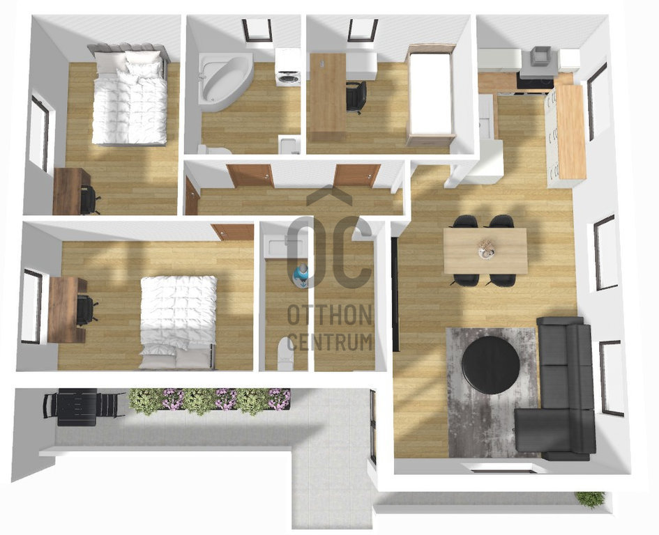 A fűtés hőszivattyús, ezen kívül hűtő-fűtő klíma áll rendelkezésre.