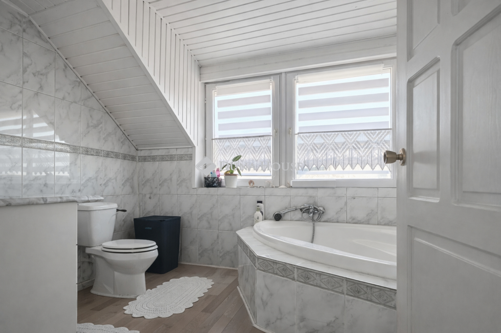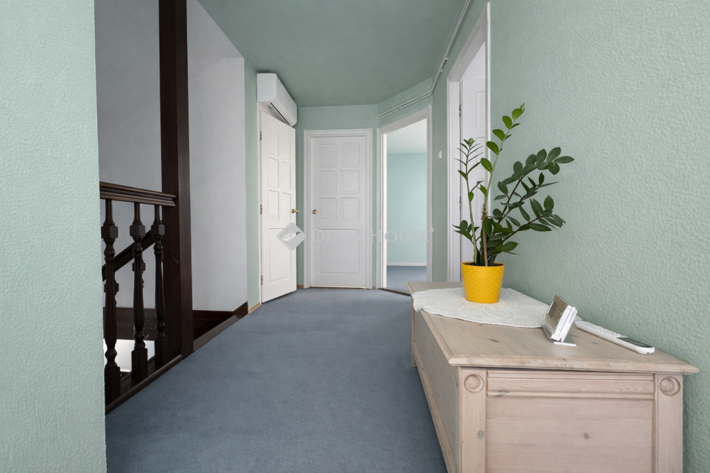 Az emeleten 3 hálószoba, egy gardróbszoba és egy sarokkádas fürdőszoba található. Az erkélyre az egyik hálóból és a fenti közlekedőből is van kijárat.
