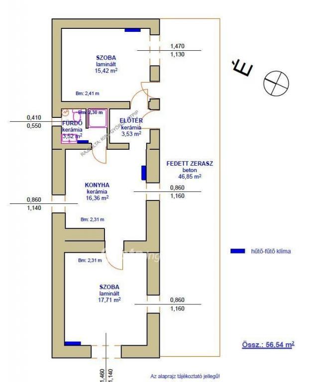 Fűtés: hűtő-fűtő klíma, fali hősugárzó, és kályha, kandalló is elhelyezhető.