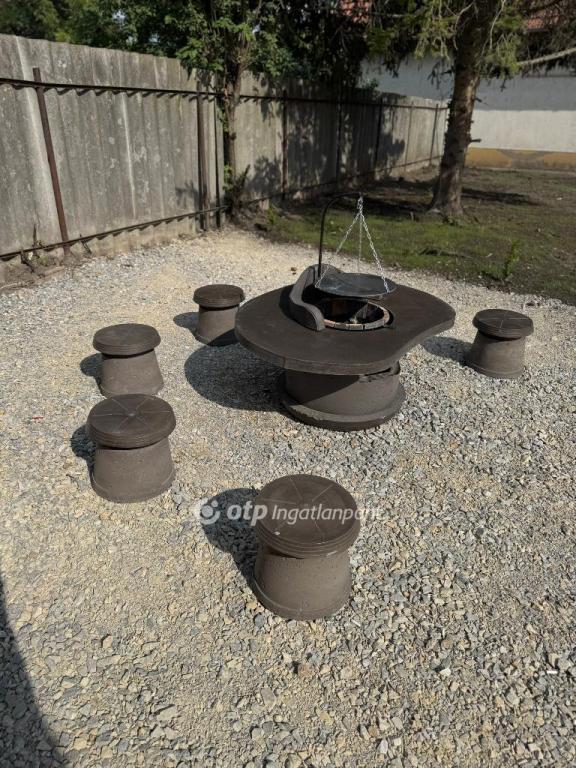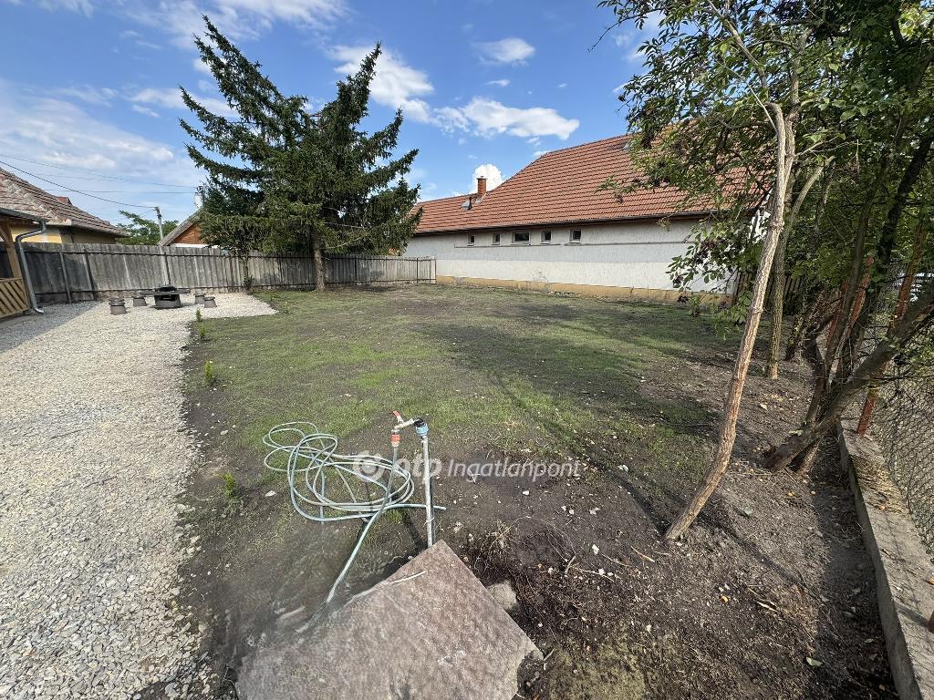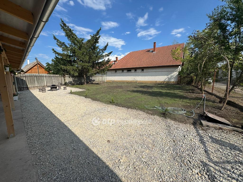 Udvara újonnan füvesítve, részben zúzott kővel burkolt (kocsibeálló), rajta kerti csap, bográcsozó.