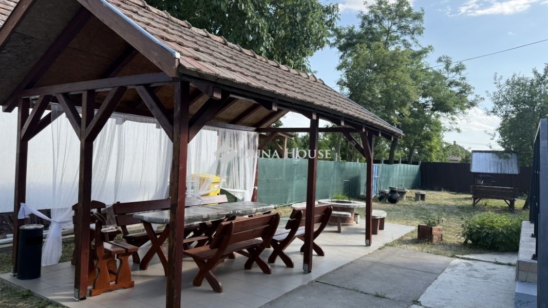 Kétgenerációs lehetőség Poroszlón!Eladásra kínálunk Poroszlón egy 110 négyzetméteres, nagy telekkel rendelkező ingatlant, amelyen két különálló ház található.Az egyik ház három szobából, egy tágas folyosóból, két fürdőszobából, valamint egy egybenyitott konyhaétkezőből áll.A másik ház külön bejárattal rendelkezik, benne egy szoba, egy konyha, egy fürdőszoba, valamint egy fedett tornác és egy raktárhelyiség is található.A ház szilikáttéglából épült. A fűtésről gázkonvektorok gondoskodnak, a meleg vizet villanybojlerek biztosítják. A nyílászárók kívül műanyagok, a belső térben fából készültek. A villany- és vízvezetékek cseréje megtörtént.Az udvaron nyársaló, egy nagyobb fedett terasz kültéri kiülővel, valamint egy ásott kút is helyet kapott. Az ingatlan teljes bútorzattal kerül értékesítésre, és jelenleg bejáratott apartmanként működik, kialakult vendégkörrel. Az udvarra autóval is be lehet állni, a telek két utcáról is megközelíthető.Az ingatlan Poroszló csendes részén van. Elhelyezkedése kiváló a közelben minden megtalálható: iskola, óvoda, buszmegálló, boltok, üzletek és a városközpont is a közelben van, valamint a Tisza-tó is elérhető távolságra található.Ne hagyja ki ezt a lehetőséget, az ingatlant ajánlom nagycsaládosoknak, befektetőknek, természetkedvelőknek.Az ingatlan banki hitellel is megvásárolható, független hitel tanácsadással állok rendelkezésére ! Hibás hirdetés bejelentése