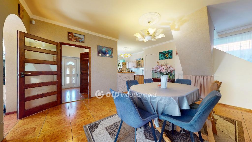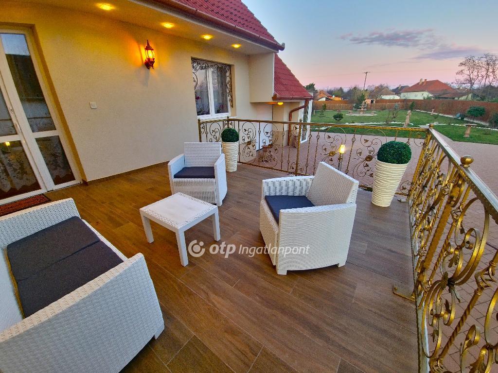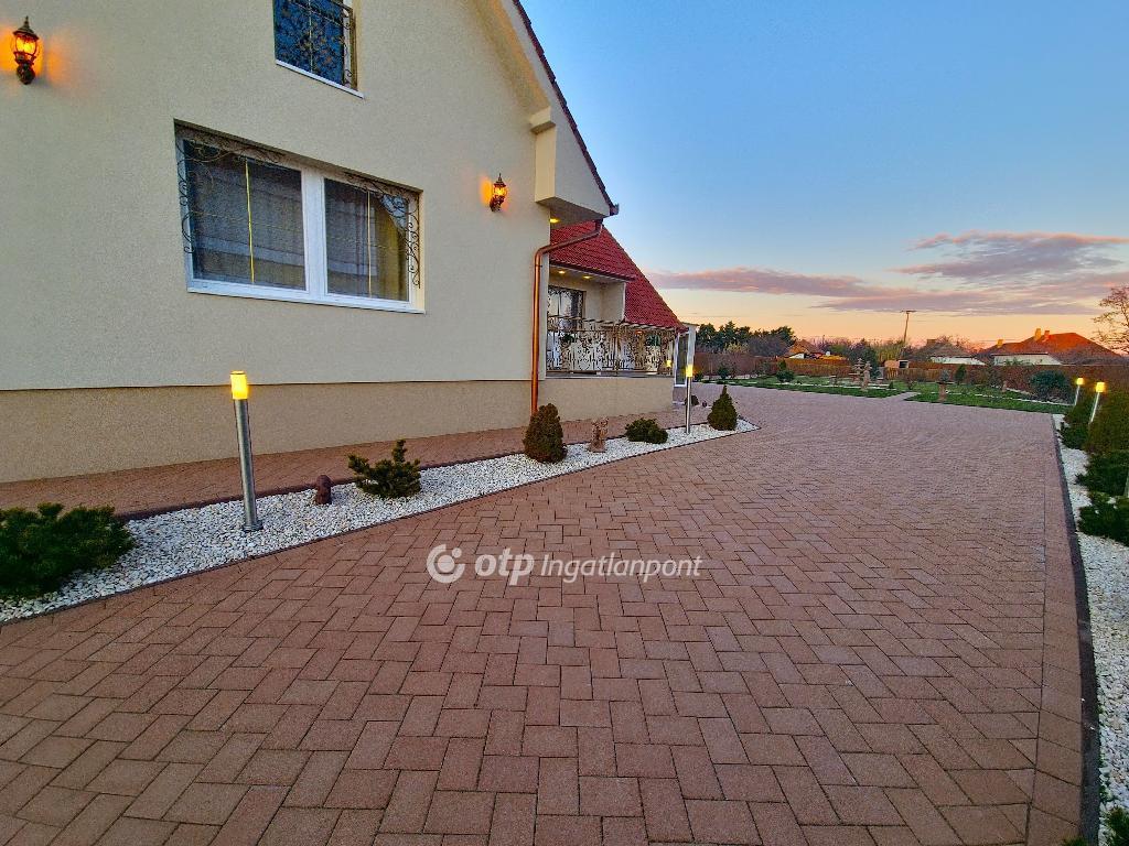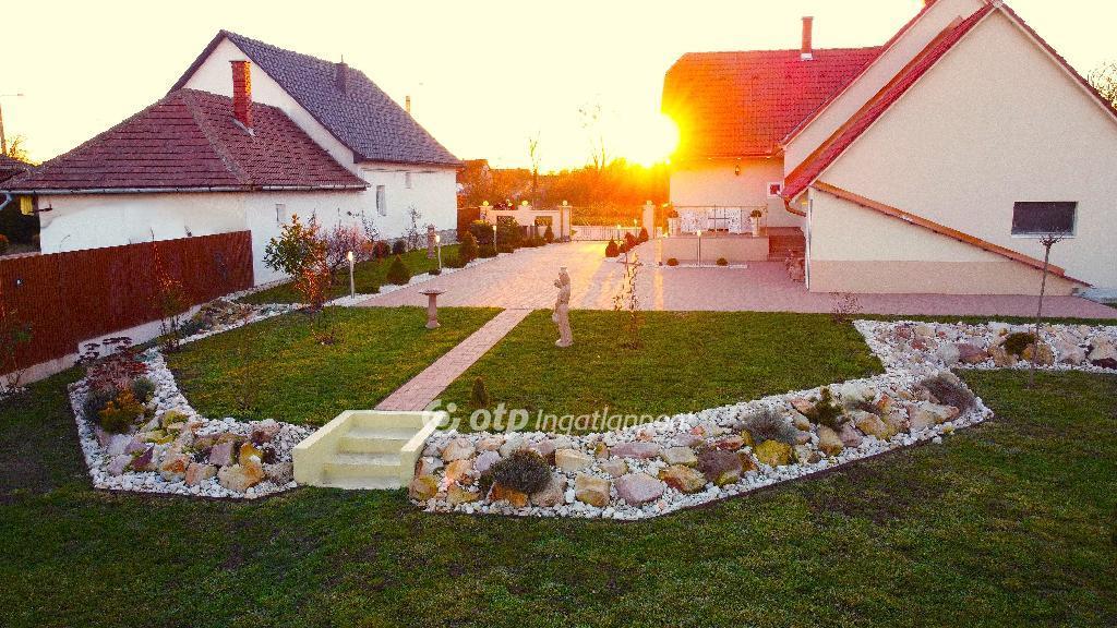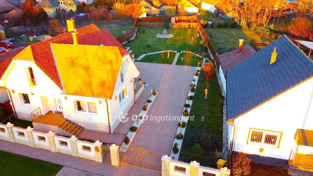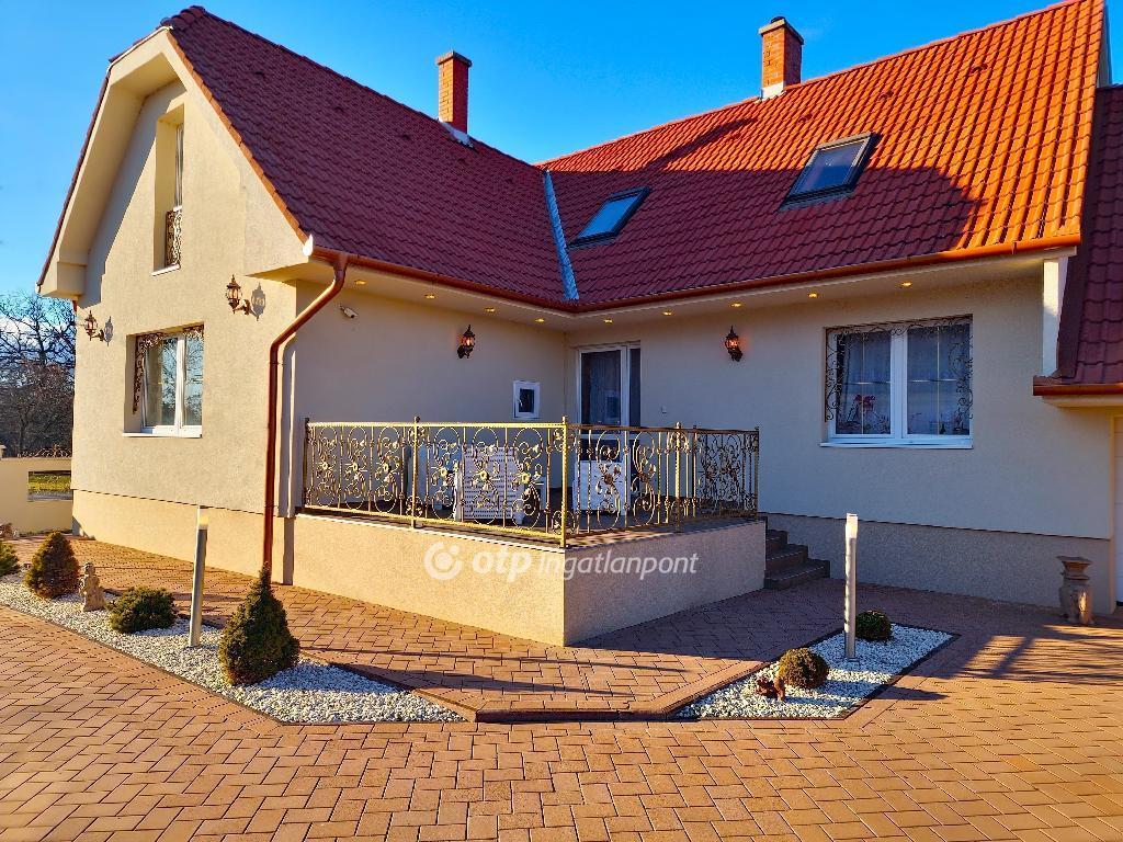 Eladó exkluzív családi ház Poroszlón, prémium otthon a Tisza-tó kapujában Poroszló csendes, rendezett utcájában, mindössze 3 perc sétára a Tisza-tótól, eladó egy igényesen megtervezett, két szintes, tágas családi ház, amely a modern technológia, a természet közelsége és az elegancia tökéletes harmóniáját kínálja. Az ingatlan 40 cm vastag téglafalazattal, Bramac tetővel, korszerű hőszigeteléssel és energiahatékony megoldásokkal épült. Fűtését WiFi-vezérelt gázkazán és vegyes tüzelésű kazán biztosítja, a komfortot klímaberendezés és 8 kamerás biztonsági rendszer növeli. A Semmelrock térkővel burkolt udvaron garázs (Hörmann automata kapuval) 3, míg az udvar további 4 jármű parkolására alkalmas. A kert középpontjában egy elegáns, több szintes szökőkút áll, amelyet gondosan térkövezett platformon áll és fehér kavicsok szegélyeznek. Kőpadok, kerti szobrok és madáritatók teszik teljessé az idilli látványt. A sziklakert természetes földszíneivel tökéletesen illeszkedik az épület környezetébe, míg a prémium rózsafajták: Eden Rose, Florentina, Peace és Charles de Mills, változatos színeikkel és formáikkal életet visznek a kertbe. A növényzet harmonikus egyensúlyt teremt: cukorsüveg fenyők, havasi törpefenyők és japán juharok színesítik a teret, míg a selyemakác és japán fehér fenyők különleges hangulatot kölcsönöznek. Az alsó szinten nappali, étkező, modern konyha, vendégszoba, fürdő és 19 m2-es terasz található, középpontjában egy 700 literes, automatizált akváriummal. A teljesen automatizált rendszer szűrőkkel, UV-C algagátlóval és időzített világítással biztosítja a tiszta vizet és az optimális környezetet. A dús növényzet és az egzotikus halak: Sajica sügérek, Odessa díszmárnák és algaevők, természetes víz alatti tájat teremtenek. A felső szinten három tágas hálószoba, nagy fürdőszoba és tárolóhelyiség szolgálja a kényelmet. A ingatlan alatt található pince sokoldalúan használható: tárolónak, borospincének vagy hobbihelyiségnek is ideális. Az ingatlan energiatakarékos megoldásai jelentős költségmegtakarítást biztosítanak. A kiváló szigetelés optimális belső klímát teremt, miközben csökkenti az energiafelhasználást. A WiFi-alapú gázkazán precíz hőmérséklet-szabályozást tesz lehetővé, kiegészítve egy vegyes tüzelésű kazánnal, amely gazdaságos és környezetbarát alternatívát kínál. A korszerű klímaberendezés minden évszakban kényelmes hőmérsékletet biztosít. Fejlett biztonságtechnika és intelligens funkciók A ház nyolc kamerás megfigyelőrendszere folyamatos rögzítést végez. Az applikációval vezérelhető biztonsági rendszer távoli hozzáférést biztosít, az integrált riasztó azonnali értesítésekkel növeli a védelmet. A mozgásérzékelők csökkentik a téves riasztásokat, garantálva az ingatlan maximális biztonságát. Az ingatlan 3 perc sétára van a Tisza-tótól, amely horgászat, vízi sportok és kerékpározás lehetőségét nyújtja. A település egész évben izgalmas programokkal vár, mint a Halászléfőző Verseny, a NagyonZene Fesztivál és a Tour de Tisza-tó. Gasztronómiai kínálata kiemelkedő, helyi piacokkal és Michelin-minősítésű éttermekkel. A Tisza-tavi Ökocentrum interaktív kiállításai, valamint a játszóterek és fitneszparkok kiváló családi programokat kínálnak. Kiváló elhelyezkedés: Az M3-as autópálya 10, Eger 30, Budapest 90 perc alatt elérhető. A dinamikusan fejlődő turisztikai térség miatt az ingatlan otthonként és befektetésként is ideális. Összegzés: Ez az ingatlan nem csupán egy lakóhely, hanem egy exkluzív élettér, ahol a modern technológia, a prémium anyaghasználat és a természet közelsége tökéletes harmóniában egyesül. Ideális választás mindazok számára, akik időtálló értéket, magas színvonalú kényelmet és esztétikai élményt keresnek egy otthonban. Ebben az ingatlanban nem fog csalódni. Jöjjön és tekintsük meg együtt, akár hétvégén is! Az ingatlan az Otthon Start hitellel is megvásárolható.