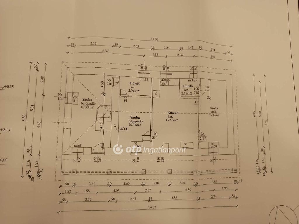 Helyiségek: 3 szoba, konyha-étkező, 2 fürdő (WC-vel), tornác, garázs.