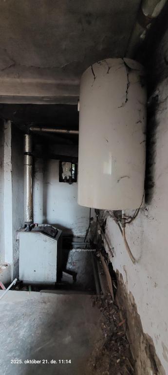 A lakóház belső elrendezése jó: 3 szoba, konyha-étkező, fürdőszoba, előszoba, kazánház, tároló és garázs. Vezetékes víz, csatorna és villany bent van a házban, gáz telken belül (nincs óra), használható kút van. A ház vegyestüzelésű kazánnal fűthető, radiátoros hőleadással.