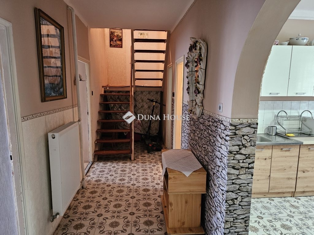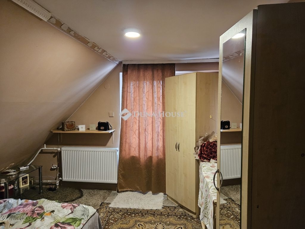 Öt szobás családi ház Ráckeresztúron eladóRáckeresztúr központjában eladó egy ötszobás családi ház, beépített tetőtérrel, 75 millió forintért.Az alsó szinten két utcafronti szoba, közlekedő, konyha/étkező, tároló, fürdőszoba és külön WC helyiségek találhatóak.A tetőtérben további három szoba, erkély, közlekedő és fürdőszoba szolgálja a bent lakók kényelmét.Az emeleti közlekedőben nappali, valamint még egy WC is kialakítható, így az ingatlan duplakomfortossá válhat.Az ingatlant 1990-ben építették gázneton blokkból, szigeteléssel nem rendelkezik. A hasznos alapterülete: földszint, 70,3 négyzetméter,a tetőtér figyelembe vehető hasznos alapterülete 35 négyzetméter, így összesen 105,3 négyzetméter.A helyiségek kialakítása, elhelyezkedése nagyon jó!Az ingatlan összközműves, fűtését gázcirkóval, valamint vegyestüzelésű kazánnal oldják meg.A vegyeskazán a 35 négyzetméteres pincében található. A helyiségek belmagassága: 2,76m.A házhoz tartozó telek 689 négyzetméter területű, mely lehetőséget ad az ingatlanon belüli parkolásra, állattartásra,valamint egy veteményeskert kialakítása mellett a fűvágással egybekötött kikapcsolódásra is.Az ingatlan a település központjában található, csendes, rendezett utcában.Ráckeresztúr, egy folyamatosan fejlődő település, mely Budapesttől 30 km távolságra van.A főváros közelsége lehetővé tesz a napi ingázást. A településen kb. 3.500 fő lakik,akiknek a kényelmét, - többek között-, a mindenki számára elérhető ingyenes WIFI hálózat is biztosítja.Amennyiben szeretné megvásárolni ezt az ingatlant, kérem, hogy vegye fel velem a kapcsolatot!Köszönöm, hogy elolvasta a hirdetésemet.