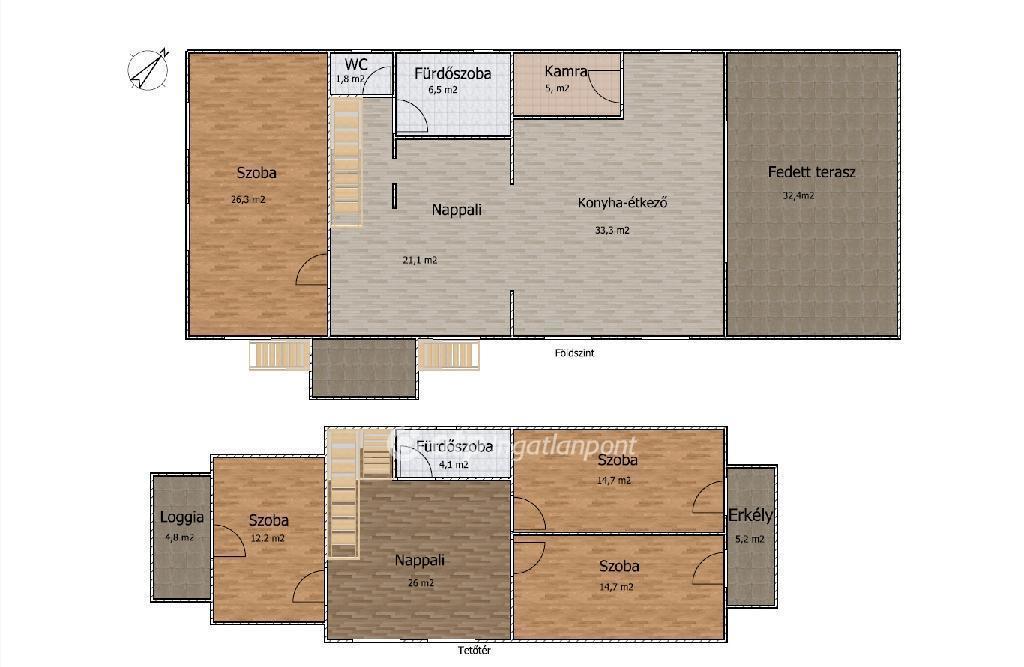 Ráckevén, egy csendes és nyugodt aszfaltozott utcában eladó egy impozáns, duplakomfortos családi ház. Az ingatlanhoz 1346 négyzetméteres, gondosan karbantartott, dísznövényekkel és fákkal beültetett udvar tartozik, amely valódi kertvárosi hangulatot biztosít. A kétszintes, betonfödémes, Porotherm 30-as téglából épült ház 2002-ben bővítésen és felújításon esett át, így korszerű és igényes otthont kínál. A 167m2 -es lakóterület (96,75 m2-es alsó lakószint és 70,5 m2-es felső szint ) mellett 32 négyzetméteres fedett terasz valamint 44 négyzetméteres pince egészíti ki a tágas tereket. Az alsó szinten egy nagy alapterületű nappali étkezővel és konyhával, egy hálószoba, fürdőszoba, külön mellékhelyiség, kamra, valamint a kertre néző, baráti és családi összejövetelekhez ideális fedett terasz található. A felső szintre masszív, kényelmes lépcső vezet, ahol napfényes nappali, három külön bejáratú, nagy méretű hálószoba, valamint a második fürdőszoba kapott helyet. Mindhárom hálóhoz saját erkély tartozik, ahonnan páratlan kilátás nyílik a környékre.