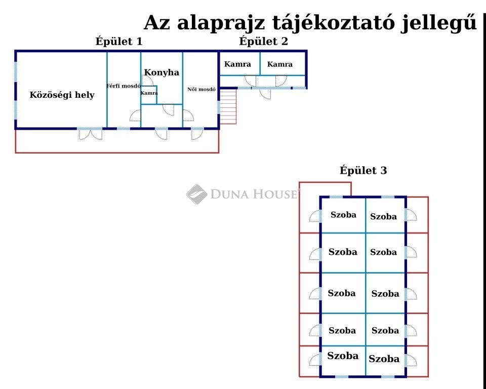 A 3519 nm-es teleken három épület helyezkedik el, összesen 10 kialakított szobával. Az épületekben tágas közösségi helyiségek, külön férfi- és női mosdók, WC-k, valamint jól felszerelt konyha és tárolóegységek találhatók.