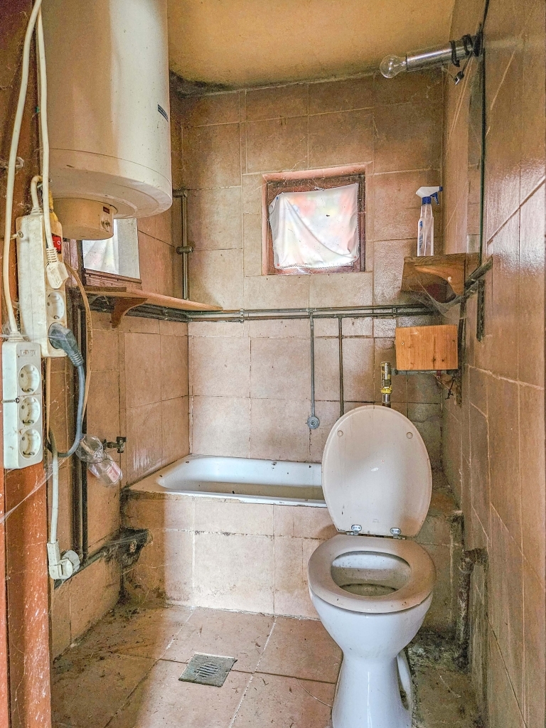 ** Egy hatalmas amerikai konyhás nappali, valamint WC-s fürdő