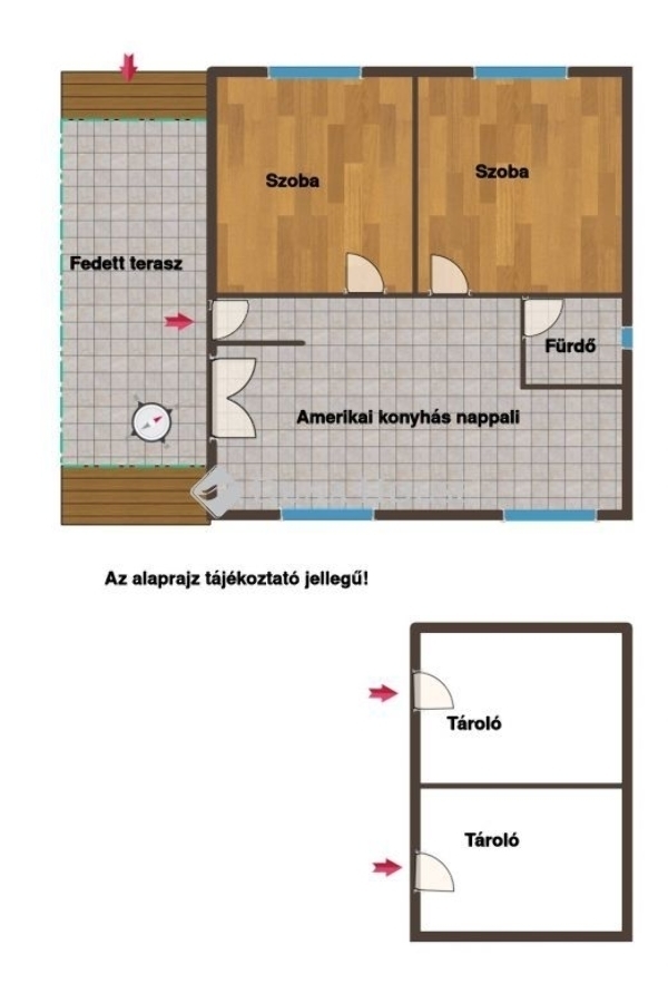 Az épület mögött található egy 20 négyzetméteres tároló is, ami az ott élők kényelmét szolgálja, de esetlegesen vendégházzá is alakítható.