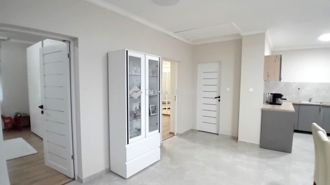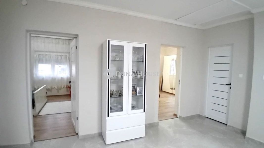 A belső tér újra felosztásakor egy előszoba, 2 nagy szoba, amerikai konyhás nappali, fürdőszoba került kialakításra.A tágas tereknek köszönhetően egy élhető, kellemes hangulatú családi otthonná vált ez az ingatlan.
