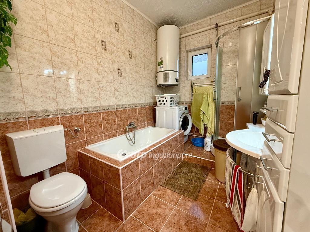 A ház 5 cm-es polisztirol hőszigeteléssel lett ellátva, ami nemcsak energiahatékony működést, hanem kellemes beltéri hőérzetet is biztosít télen-nyáron. Ez a tégla és szilikát építésű otthon három tágas, napfényes szobával, egy világos nappalival, praktikus konyhával és hűvös kamrával, valamint igényesen kialakított fürdőszobával várja új tulajdonosát. A ház belső tereinek hangulatát a laminált parketta és a világos színek kombinációja határozza meg, kellemes, otthonos atmoszférát teremtve.