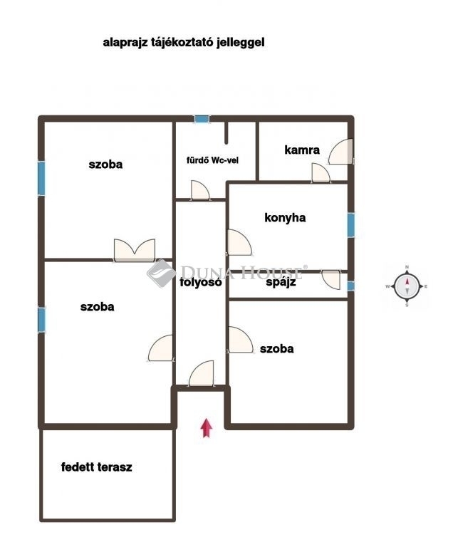 Helyiségei: 3 szoba, fürdő wc-vel, konyha, kamra és folyosó.