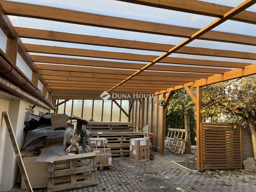 - a csarnok előtt 77 m2, félig zárt, polikarbonát pergola
