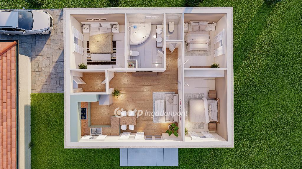 Fejér vármegye, Székesfehérvár szomszéd településén, SÁRKERESZTESEN kínáljuk eladásra ezt az új építésű, modern családi házat, amely ideális otthon lehet két gyermekes családok számára. FALUSI CSOK igényelhető, így akár 7,5M Ft vissza nem térítendő támogatás igénybe vehető két gyermek után! A 750 nm-es telken a nettó 82 nm-es ingatlan egy tágas, fiatalos környezetet nyújt, amely kényelmet és funkcionalitást ötvöz. A ház három hálószobával, egy tágas fürdőszobával és külön WC-vel rendelkezik, így elegendő helyet biztosít a növekvő családnak. Az amerikai konyhás nappali és étkező teret teremt a közös időtöltéshez és a családi összejövetelekhez. Az ingatlan a legújabb energetikai elvárásoknak megfelelően épül, így a 15 centis grafitos szigetelés, a műanyag nyílászárók, valamint a napelem és az elektromos fűtés (hőszivattyú akár) garantálja a kedvező rezsit, amely fontos szempont lehet egy fiatal család számára. Az ingatlantól 5 perc sétára megtalálható iskola, patika, orvosi rendelő, így az elhelyezkedése kíváló! Az építkezést megbízható, leinformálható kivitelező végzi, akinek több évtizedes tapasztalata biztosítja az ingatlan minőségét és megbízhatóságát. Szerződéskötéstől számított 9 hónap a tervezett átadás. Ha bármilyen kérdése merülne fel az ingatlannal kapcsolatban, ne habozzon felvenni velünk a kapcsolatot, akár hétvégén is! Ügyfeleink teljes körű támogatást kapnak az adásvétel lebonyolításában, és egyedi kamatkedvezményeket biztosítunk hitelügyeikhez. Ne habozzon, ez az otthon lehet az önök családi álma! Vegye fel velünk a kapcsolatot még ma, és lépjenek közelebb álmaik otthonához!