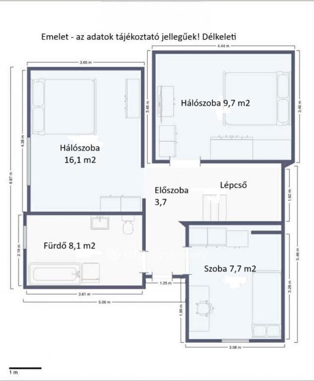 Tágas belső tere és sok szobája révén ez az ingatlan ideális választás lehet nagyobb családok, több generáció együttélése vagy otthoni munkavégzés esetén is.