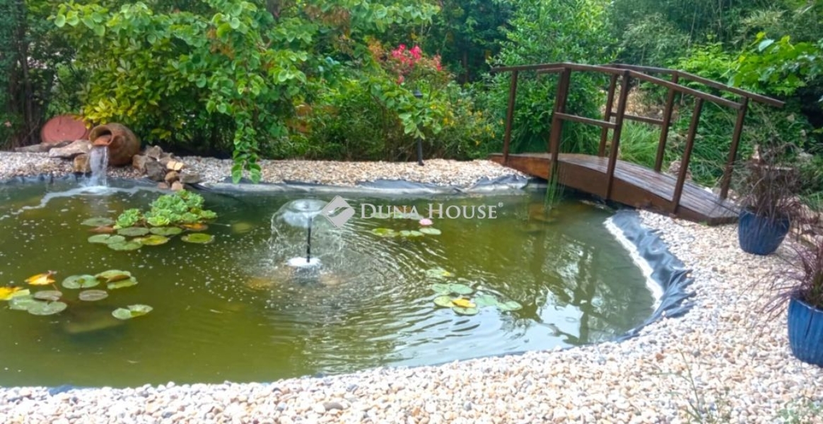 Eladásra kínálunk egy kiemelkedő műszaki tartalommal és magas esztétikai minőséggel megvalósított, 280 m²-es + 42 m²-es terasszal rendelkező , felújított, földszintes + beépített tetőteres családi házat, amely egy 1094 m²-es, parkosított, ősfás telken helyezkedik el.Az ingatlan 2004-ben épült, szerkezeti rendszere és gépészeti megoldásai a korszak minőségi kivitelezését tükrözik, míg energetikai adottságai a jelen kor elvárásainak felelnek meg.A telek rendezett, kiválóan megtervezett kertépítészeti kialakítással rendelkezik.A dús növényzettel határolt udvaron két önálló pavilon, egy 5,5 méter átmérőjű, beépített kerek medence, továbbá szalonnasütő és bográcsozó hely, valamint egy esztétikai és mikroklíma-szempontból is értékes kerti tó díszíti a környezetet.A teleket kovácsoltvas kerítés határolja, automata kapunyitó rendszerrel és kültéri kamera is beépítésre került.A három gépkocsi számára kialakított udvari beálló fali elektromos autótöltővel felszerelt.A lakóépület alapozása sávalap, falazata B30-as tégla, a födémszerkezet E-gerendás betongerenda-béléselemez rendszer, amely hosszú távon is stabil, jól terhelhető szerkezetet biztosít. A burkolatok és felületek minden helyiségben gondosan megválasztott anyaghasználattal készültek. A 30 cm vastag grafitos hőszigetelés és az A+++ energetikai besorolás a kiemelkedő hőtechnikai hatékonyság bizonyítéka. A teljes épület energiaellátását egy 20 kW teljesítményű inverteres napelemes rendszer támogatja, amely jelentős részben önellátóvá teszi a háztartást, és minimalizálja az üzemeltetési költségeket.A földszint funkcionális térszervezése a mindennapi komfortot szolgálja.A központi elem az amerikai konyhás nappali, amely közvetlen teraszkapcsolattal rendelkezik, ezáltal a belső tér harmonikusan találkozik a kerttel.Két nagyméretű szoba illetve egy utcára néző, különálló irodahelyiség, továbbá mosókonyha és wc + teljes egy fürdőszobai egység található ezen a szinten.A tetőtérben egy hatalmas hangszigetelt nappali kapott helyet, amely jelenleg alkalmas zeneszobának vagy házimozinak.Ezen felül egy hálószoba, tusoló, külön WC és egy beépített szauna is kialakításra került.Ebben a térben rengeteg lehetőség rejlik a további átalakításra.A fűtési-hűtési rendszer: elektromos és kondenzációs gázkazán, padlófűtés, valamint minden helyiségben elhelyezett hűtő-fűtő klímaberendezés biztosítja az optimális hőmérsékletet. A rezsiköltségek rendkívül alacsonyak: a havi kiadás mindössze körülbelül 15 000 Ft.Az ingatlan ideális választás nagycsaládosnak, valamint azok számára, akik magas építészeti minőségű, energiahatékony, ugyanakkor természetközeli otthont keresnek.A település kiemelkedő infrastruktúrával rendelkezik: orvosi rendelők, gyógyszertár, bölcsőde, óvoda, iskola és sportlétesítmények mind helyben elérhetők. A környezet természeti értékekben gazdag egyik oldalán horgásztavak és a Sárrét természetvédelmi terület, másikon a Pentelei parkerdő túraútvonalakkal. A község épített öröksége a Zichy-kastély és annak ősfás parkja.Az ingatlan elhelyezkedése logisztikailag is kedvező: Székesfehérvár 10 perc, a Balaton 20 perc alatt elérhető, az autóbusz-közlekedés kiváló.A kialakítás és a telekméret vállalkozási célú hasznosítást is lehetővé tesz. Hibás hirdetés bejelentése